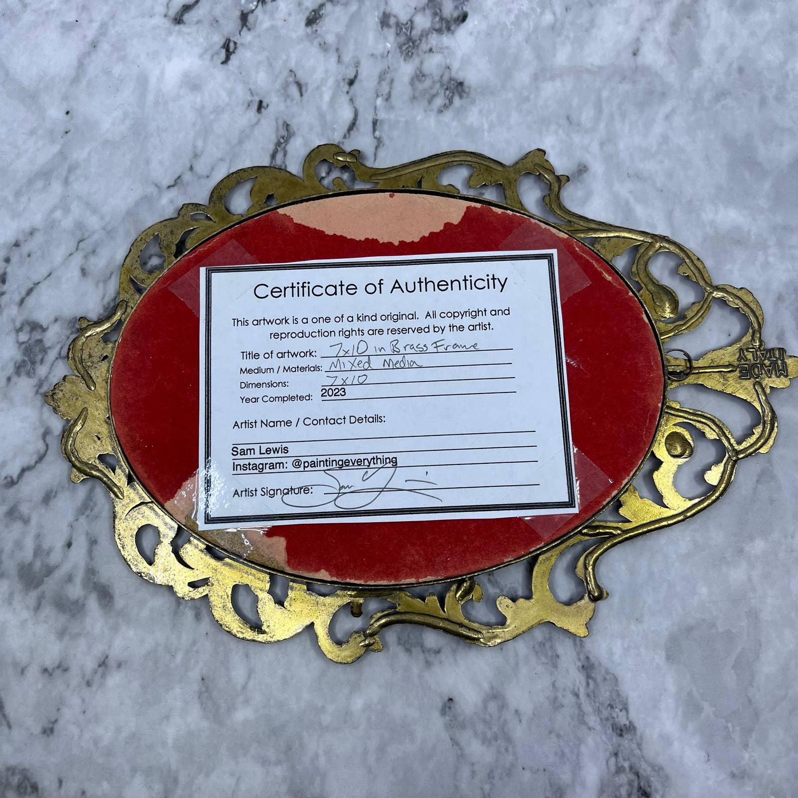 Original Framed Abstract Art Painting 7x10" in Victorian Brass Frame w/ COA TC7