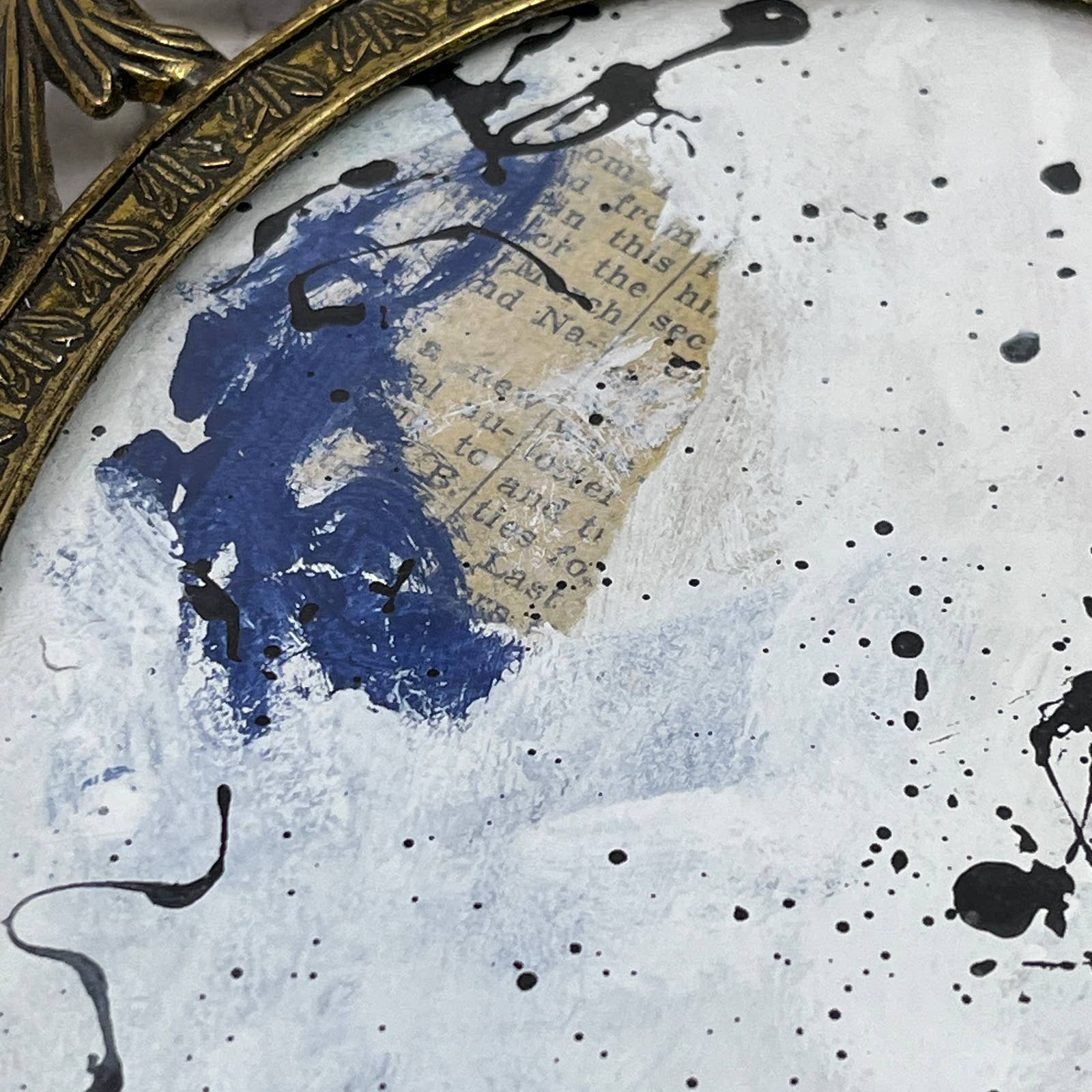 Measures about 7x10" Including frame. Mixed media including origanal Newspaper from a 1935 Minneapolis Journal by abstract artist Sam Lewis. The frame is Victorian Brass made in Italy with convex bubble Glass. This is a great and affordable way to own a piece of original art and add a pop of color to your space. Also a great gift idea. Comes with signed COA certificate of authenticity.