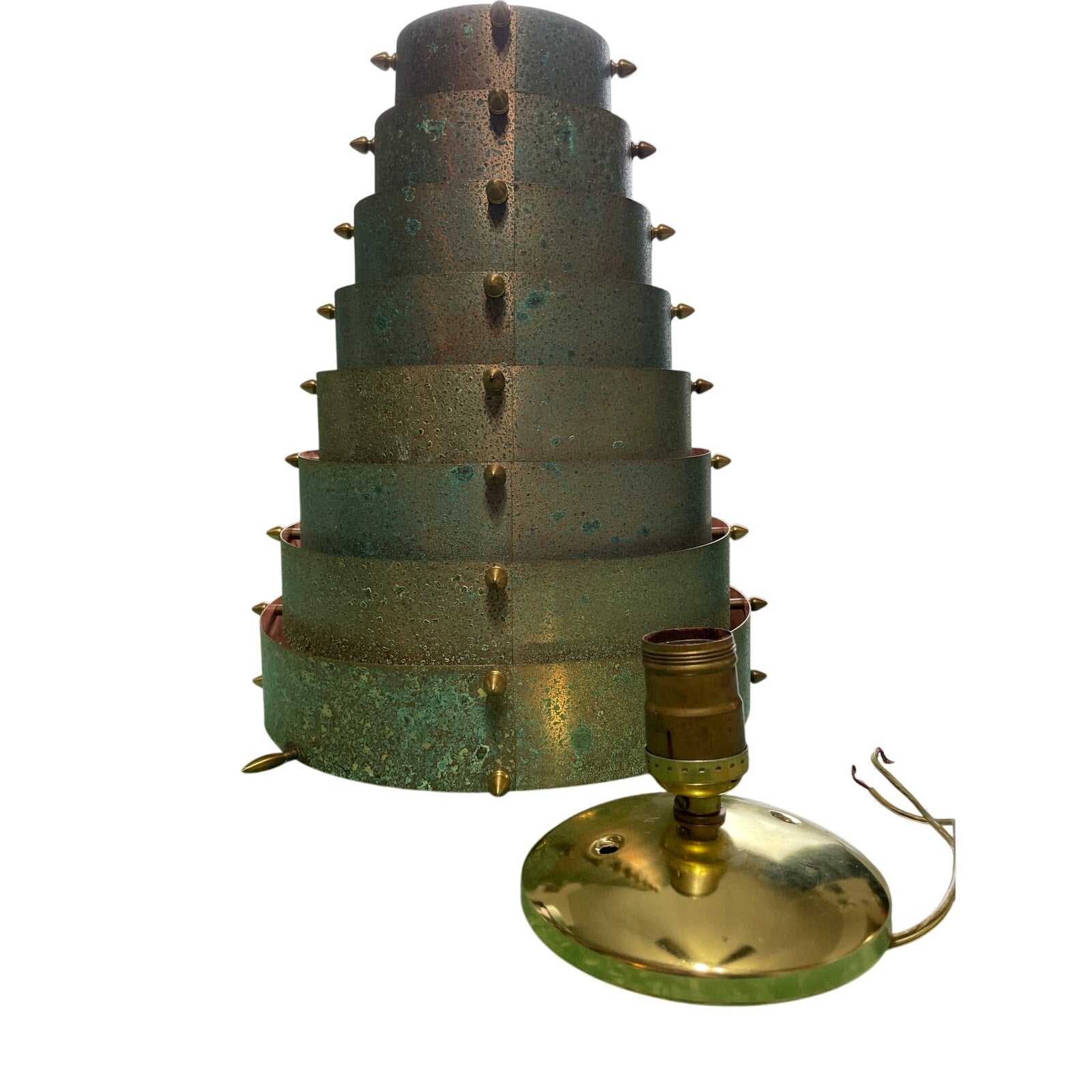 Original Frank Stone Art Hanging Light Fixture Copper Brutalist MCM Signed 14"