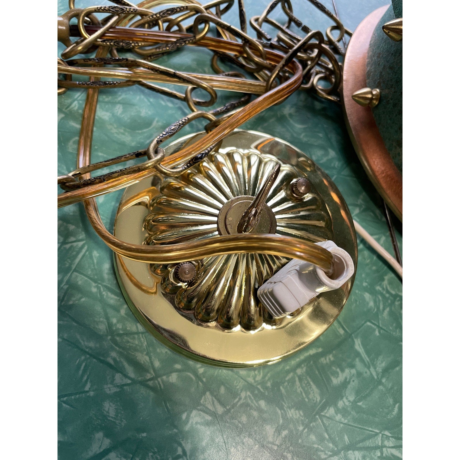 Original Frank Stone Art Hanging Light Fixture Copper Brutalist MCM Signed 21"