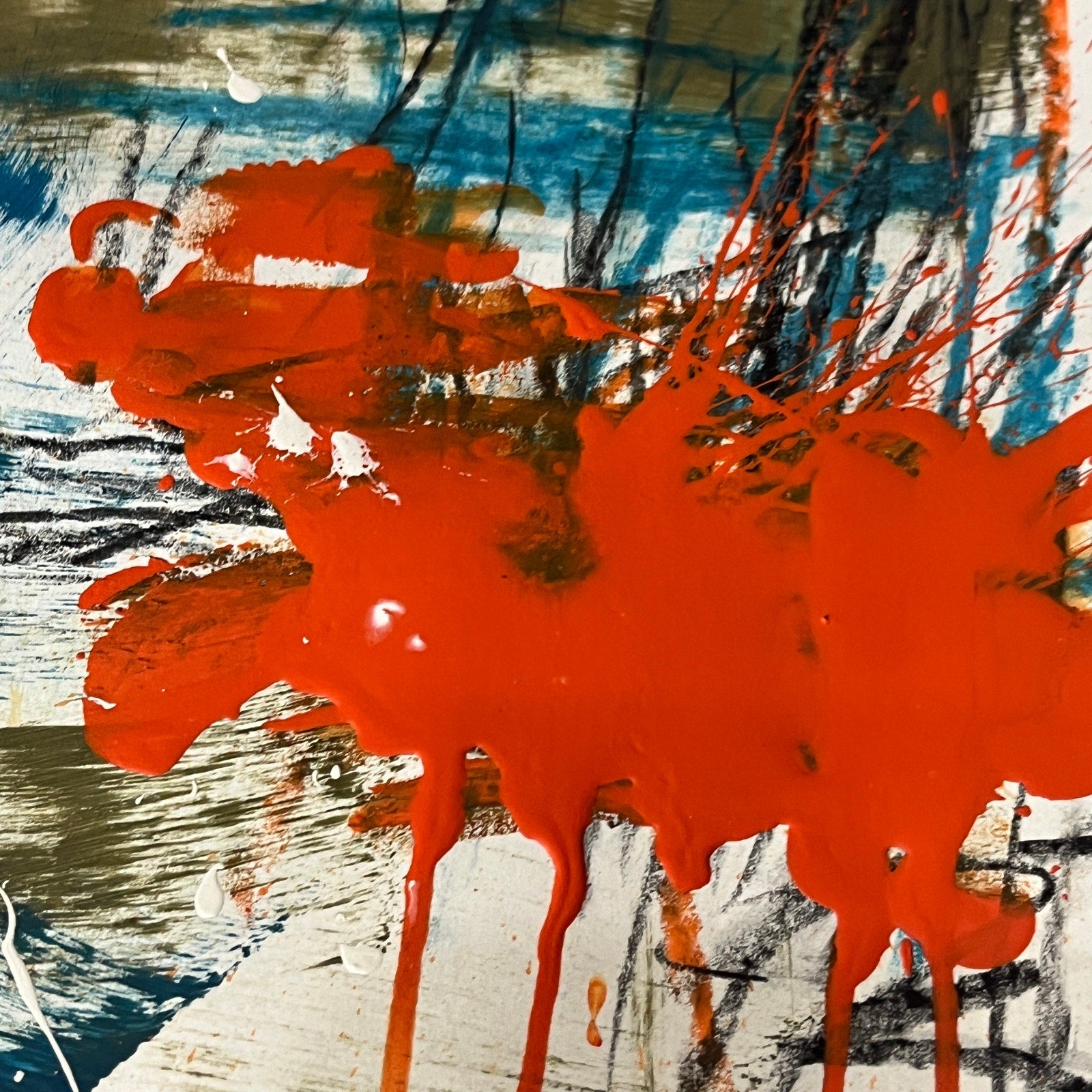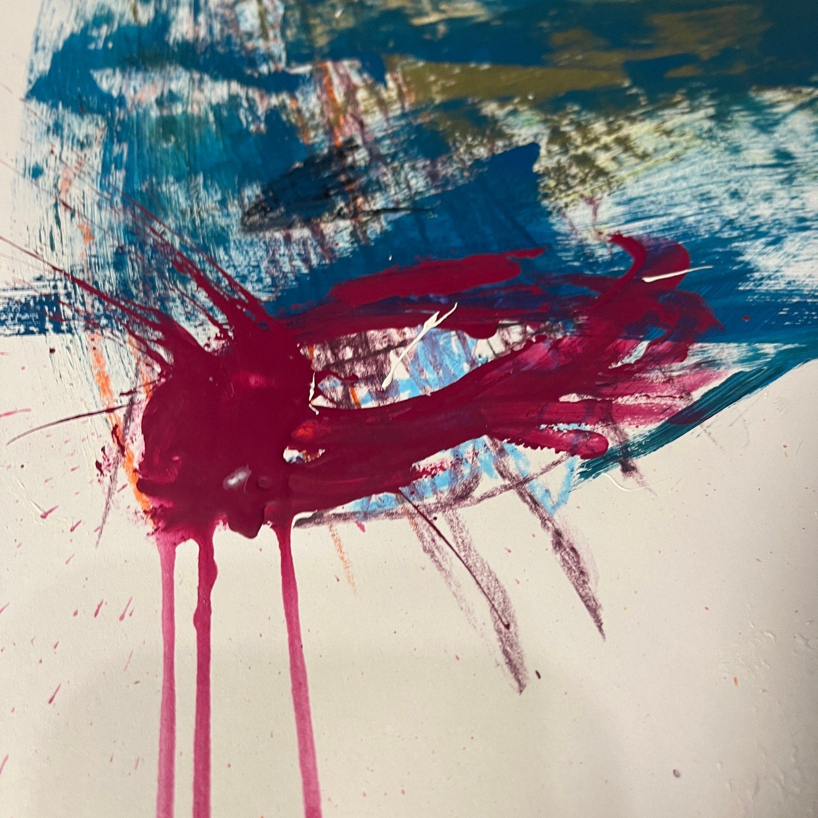 FRAME NOT INCLUDED 18x24" will ship rolled up. Abstract Mixed Media Art Painting on paper. Can easily be put in a common poster size frame. Original signed piece by artist Sam Lewis. This is a great and affordable way to own a piece of original art and add a pop of color to your space. Also a great gift idea.