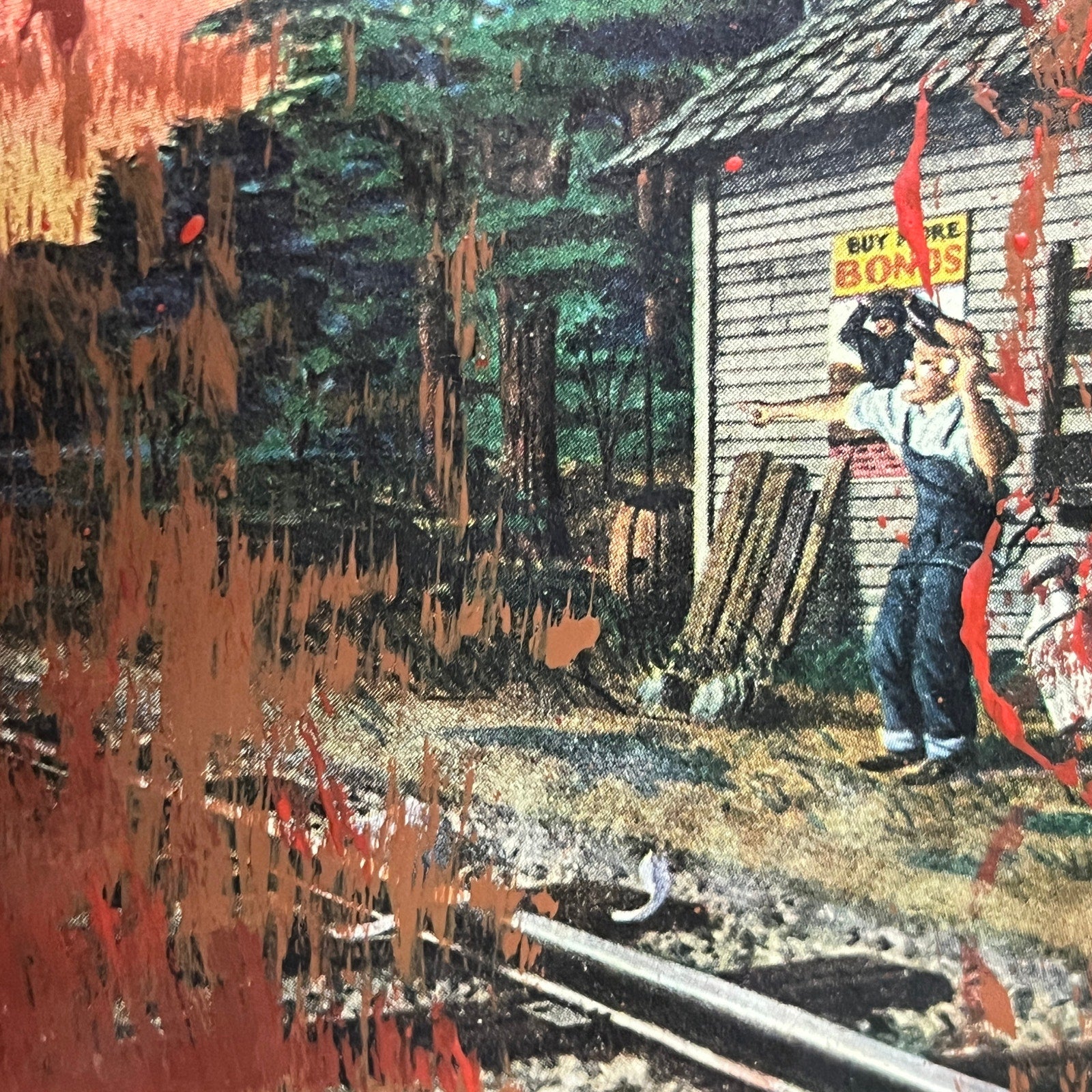 This is a large piece that measures about 32x48". This is an original painting by abstract artist Sam Lewis. This is a great and affordable way to own a piece of original art and add a pop of color to your space. Also a great gift idea. Ready to hang.