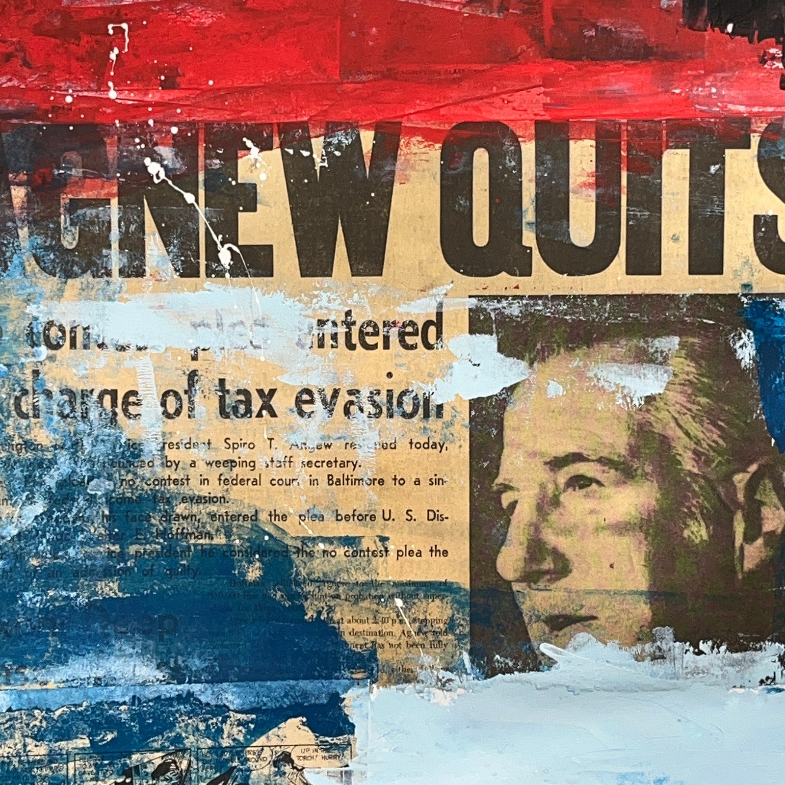 Original Mixed Media Abstract Modern Art Painting 24x36 "Agnew Quits" Signed