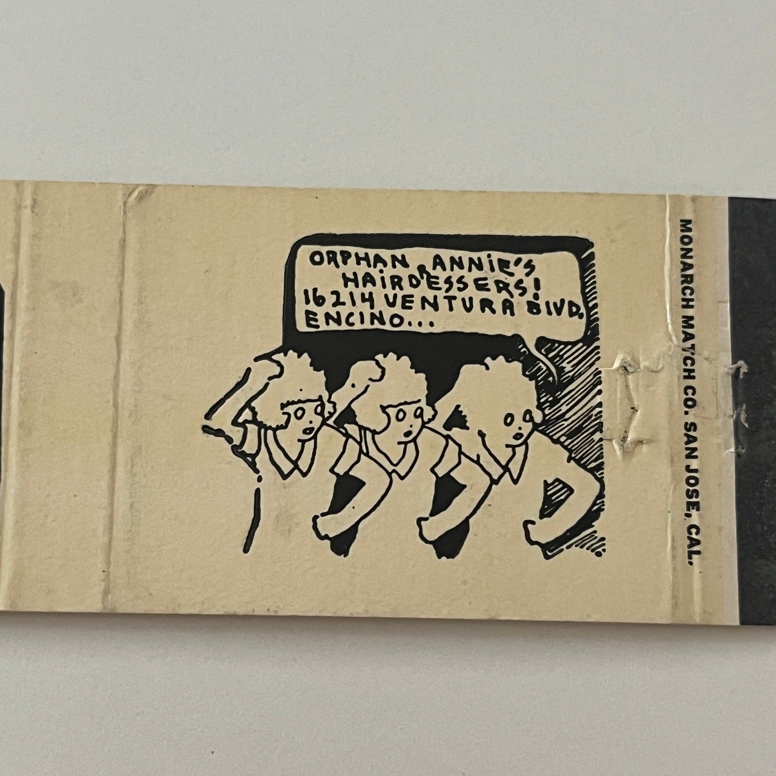 Orphan Annie's Hairdressers Encino CA Vintage Matchbook Cover TB6-MB2-4