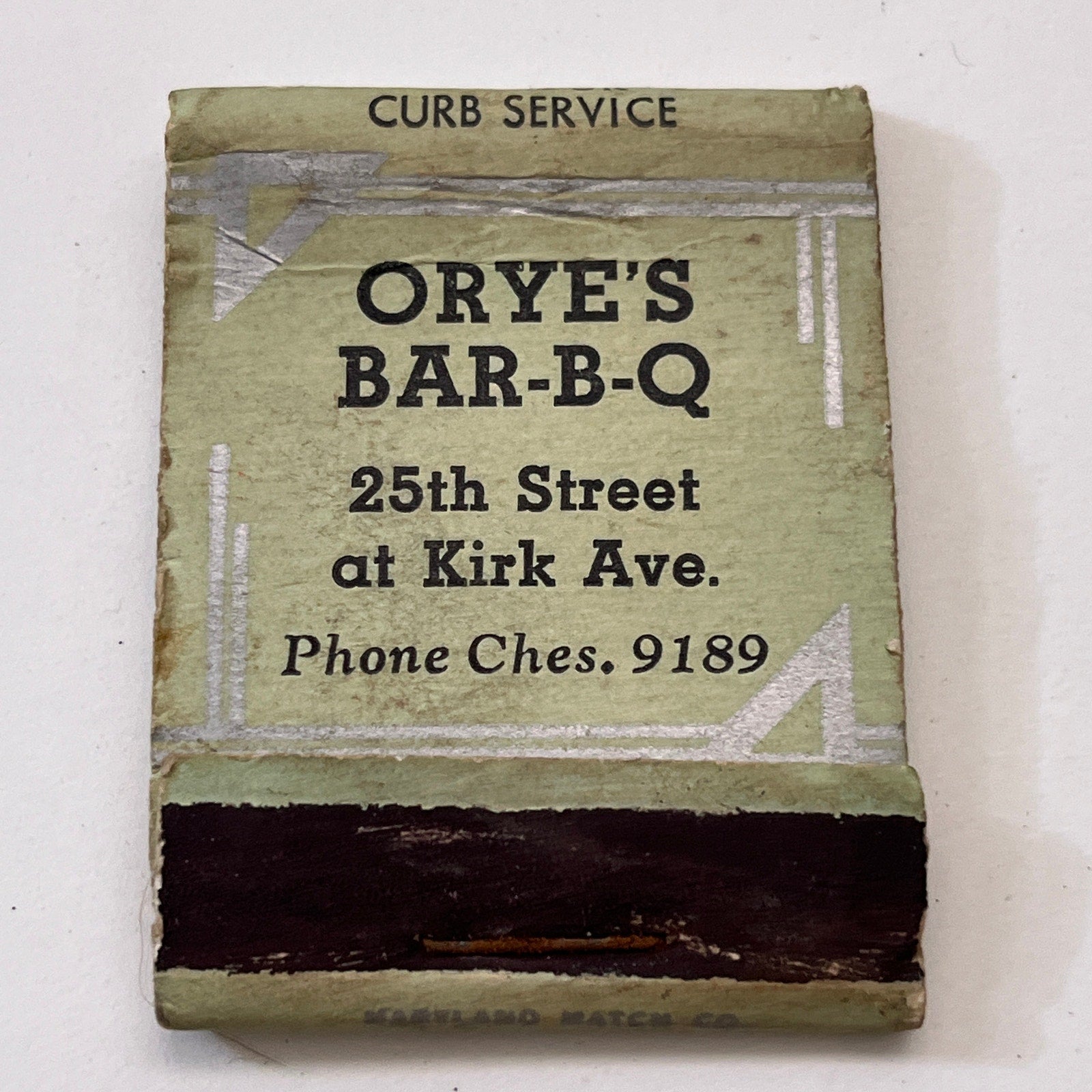 Orye's Bar-B-Q 25th St at Kirk Ave Vintage Matchbook Cover TB8-MB3-2