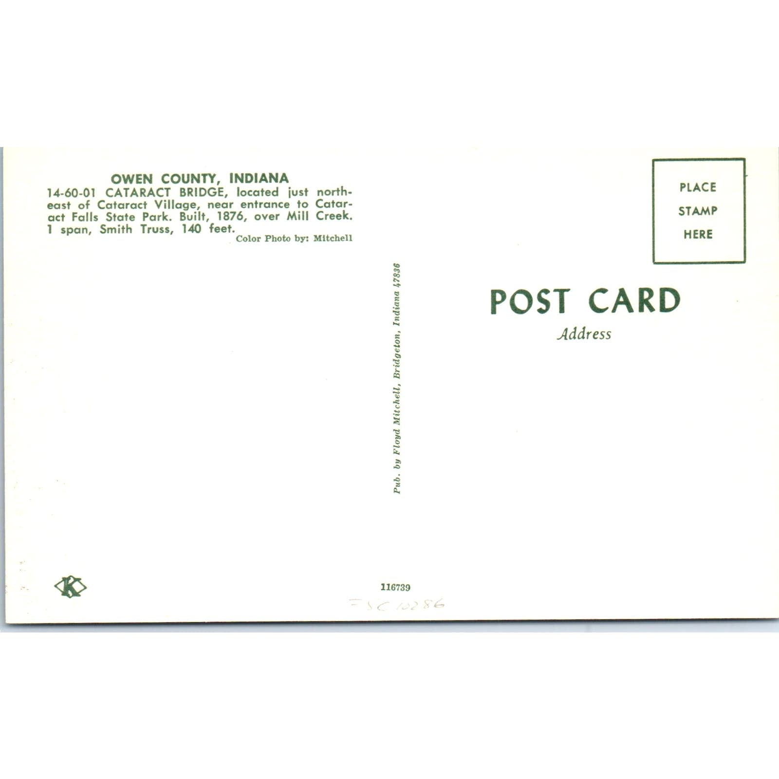 Owen County Indiana Cataract Bridge Vintage Covered Bridge Postcard PD6