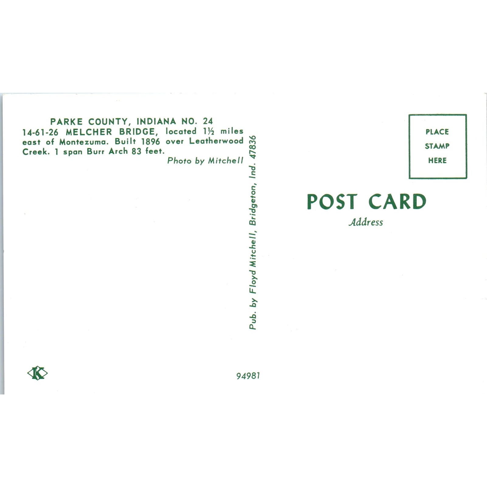 Parke County IN 24 Melcher Bridge Vintage Covered Bridge Postcard PD6