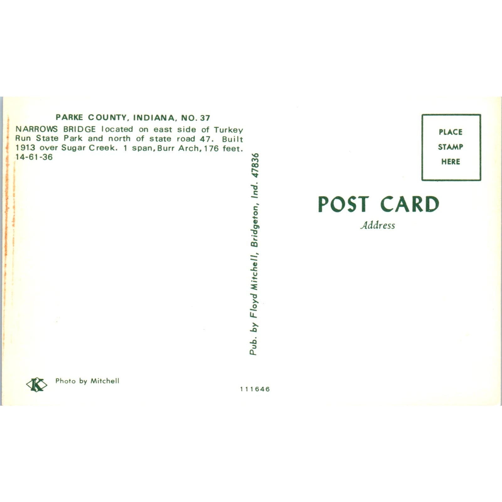 Parke County IN No 37 Narrows Bridge Vintage Covered Bridge Postcard PD1
