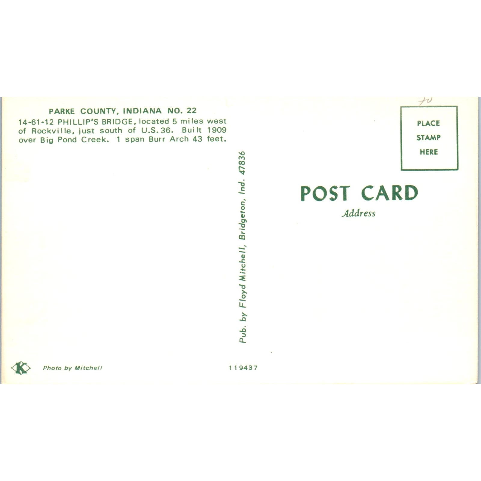 Parke County Indiana #22 Phillips Bridge Covered Bridge Postcard PC6