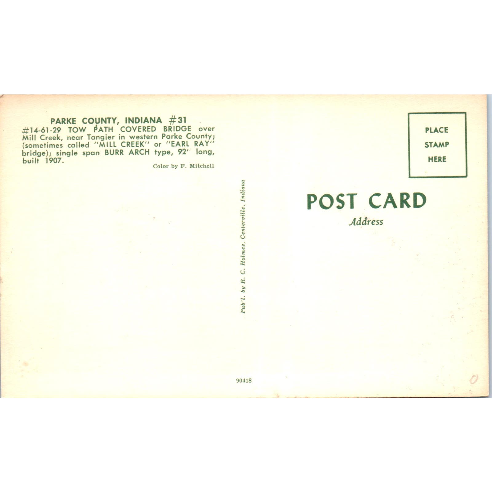 Parke County Indiana #31 Tow Path Earl Ray Covered Bridge Postcard PB13