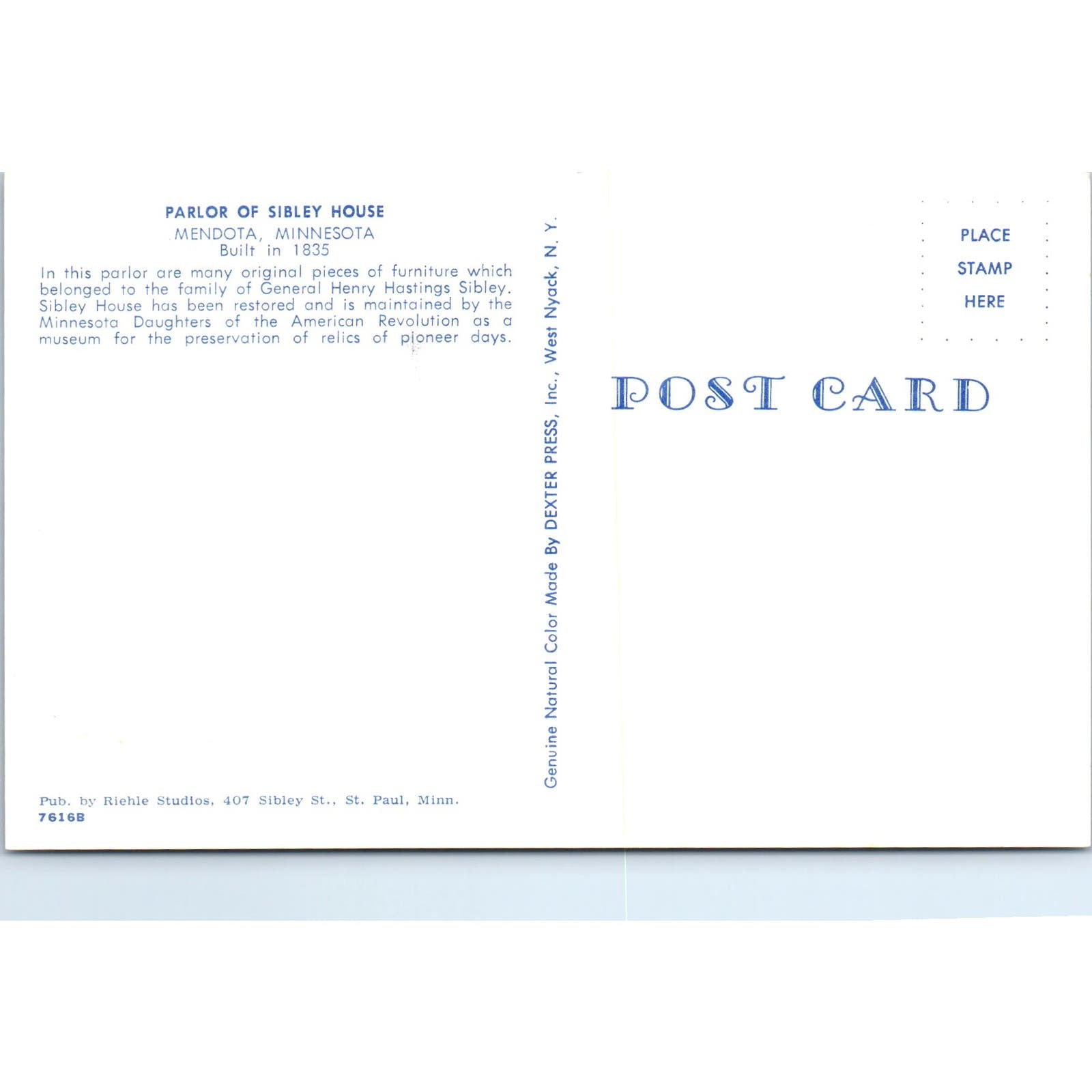 Parlor of the Sibley House Mendota Minnesota Original Postcard PB5