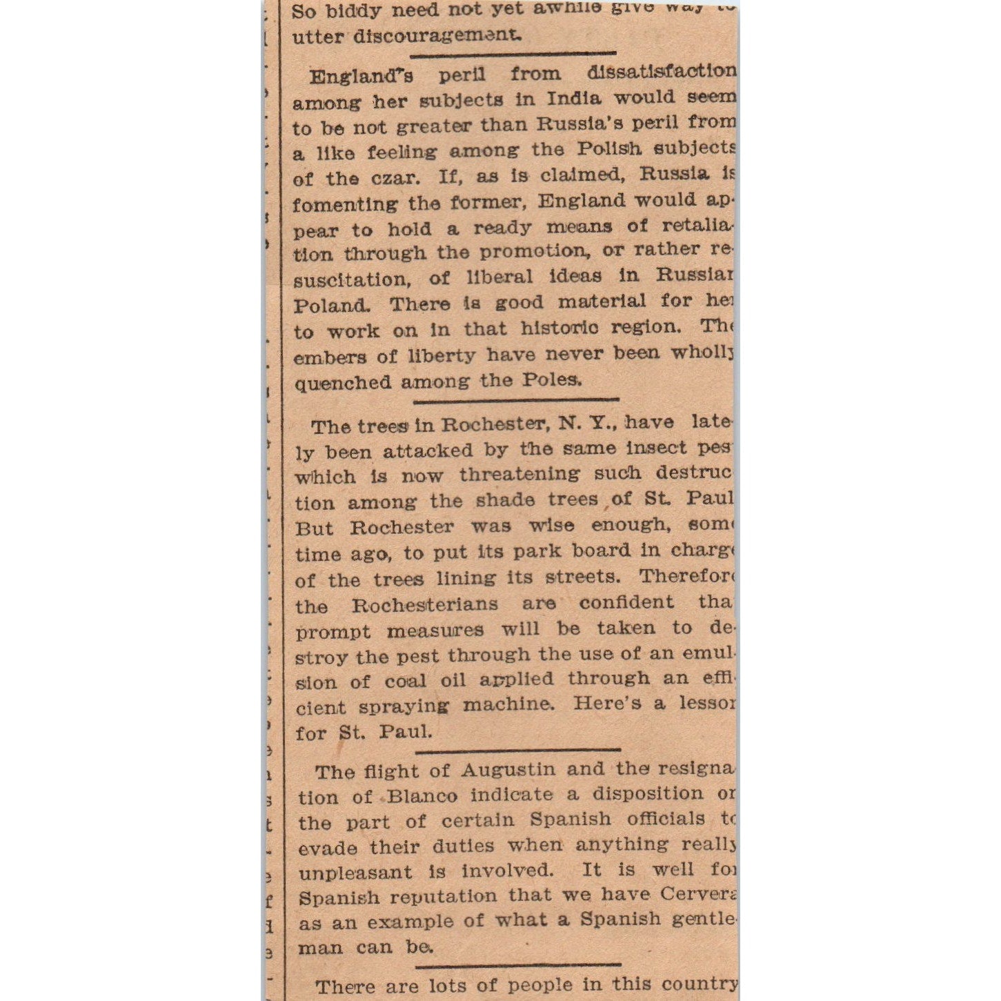 This is around 2" wide. If you need an exact measurement please ask. Original piece pulled from the St. Paul Pioneer Press Aug 17, 1898. There may be some light staining, tears, and/or other signs of wear and tear. See pics for condition.