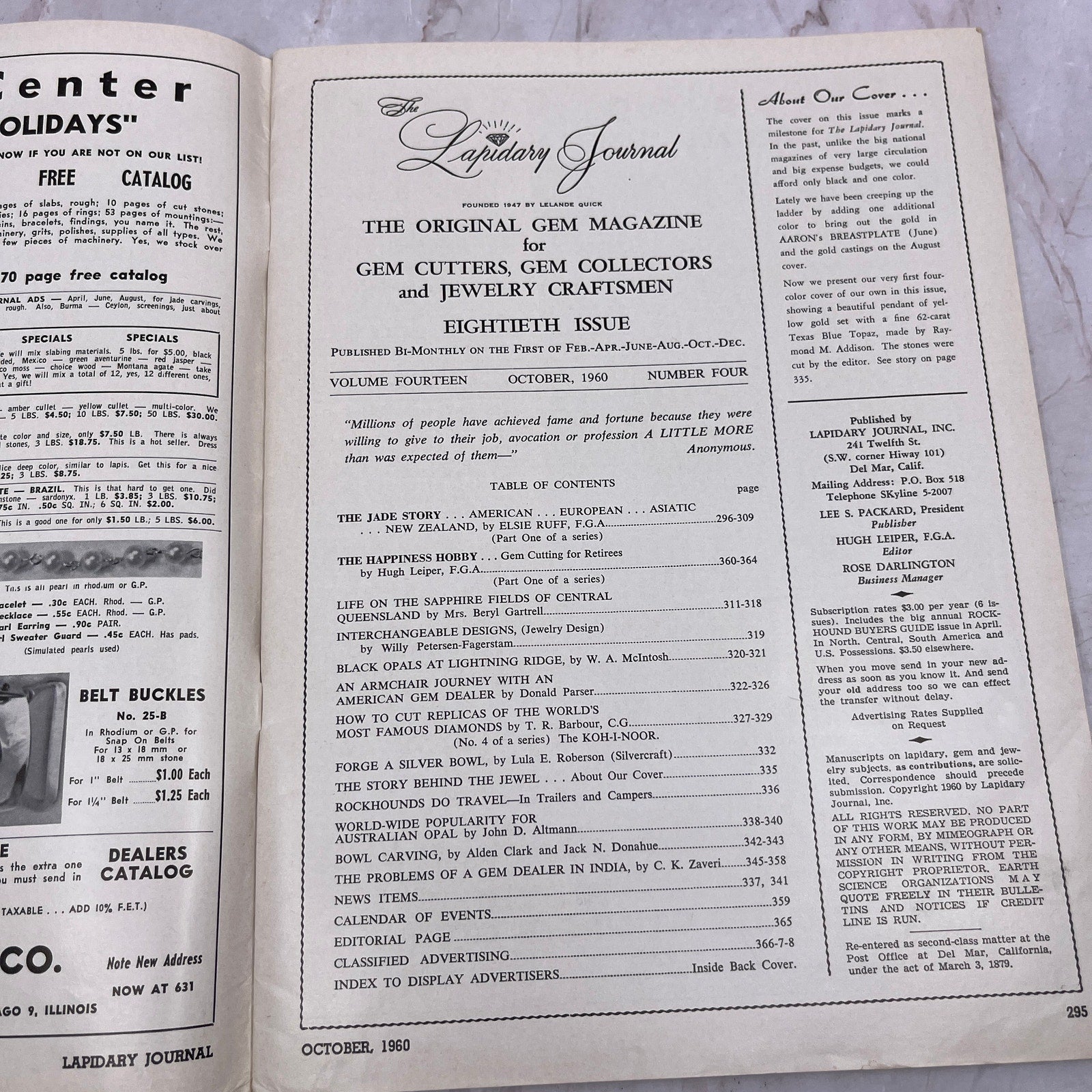 Pendant w/ 62 Carat Texas Blue Topaz - Lapidary Journal Magazine - Oct 1960 M22