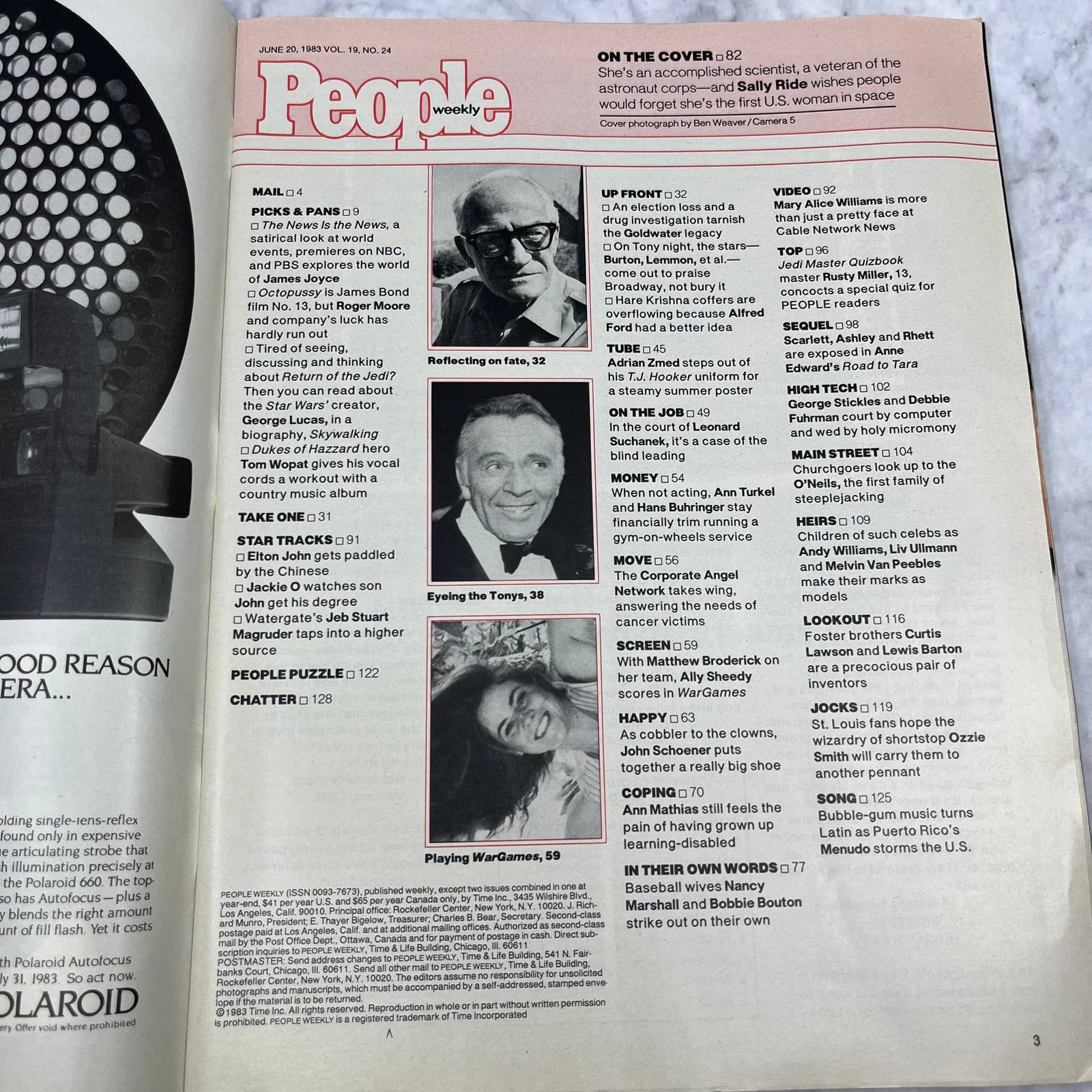 People Weekly Magazine June 20 1983 Astronaut Sally Ride Star Wars Jedi Quiz TJ3