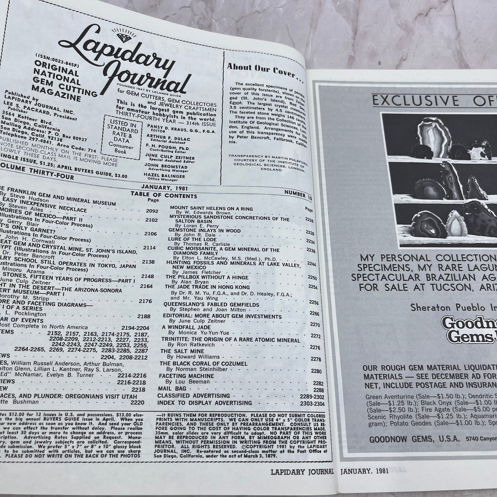 Peridot Forsterite Zahargad Red Sea Egypt - Lapidary Journal Magazine - Jan 1981 M27
