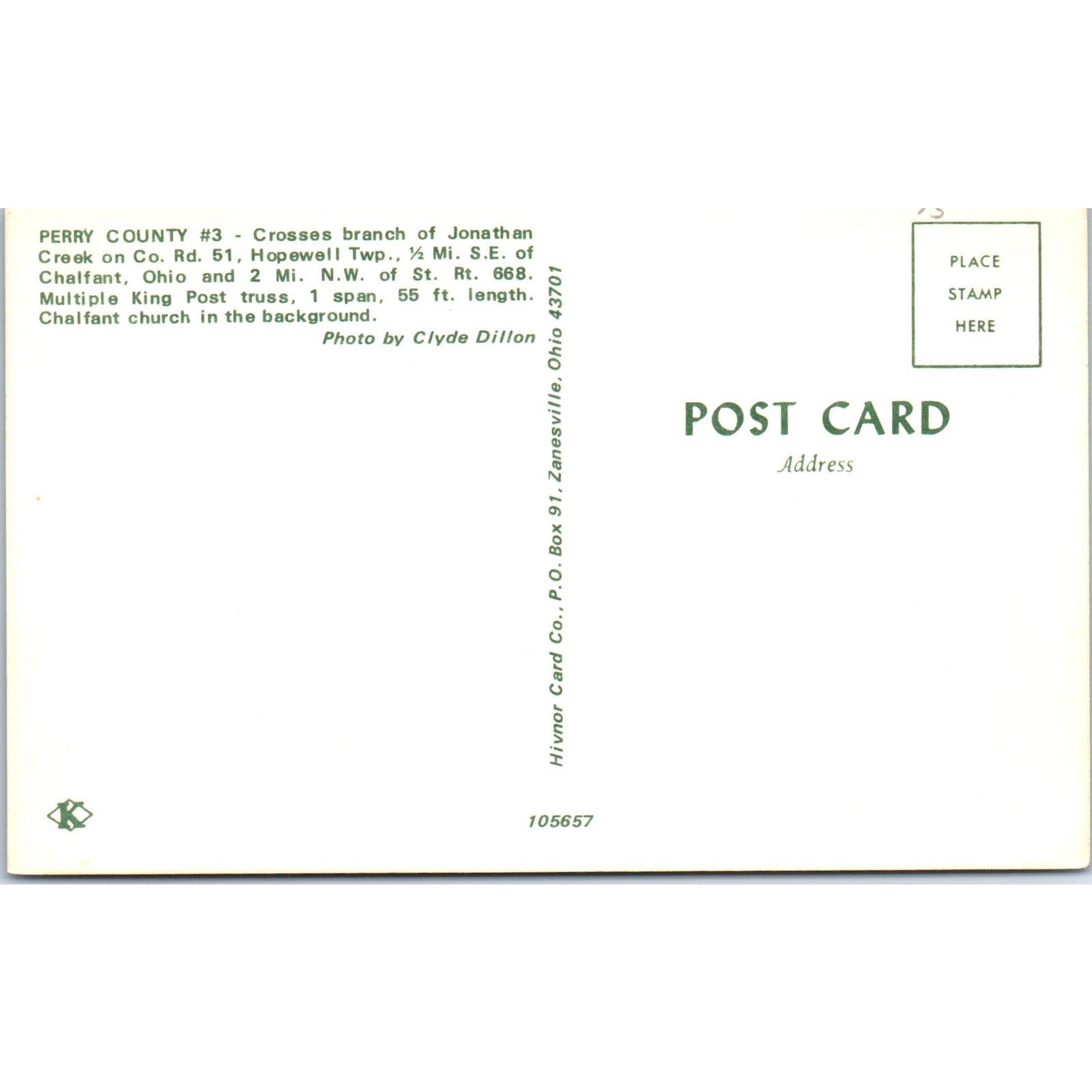 Perry County #3 Jonathan Creek Hopewell Twp Ohio Covered Bridge Postcard PC2