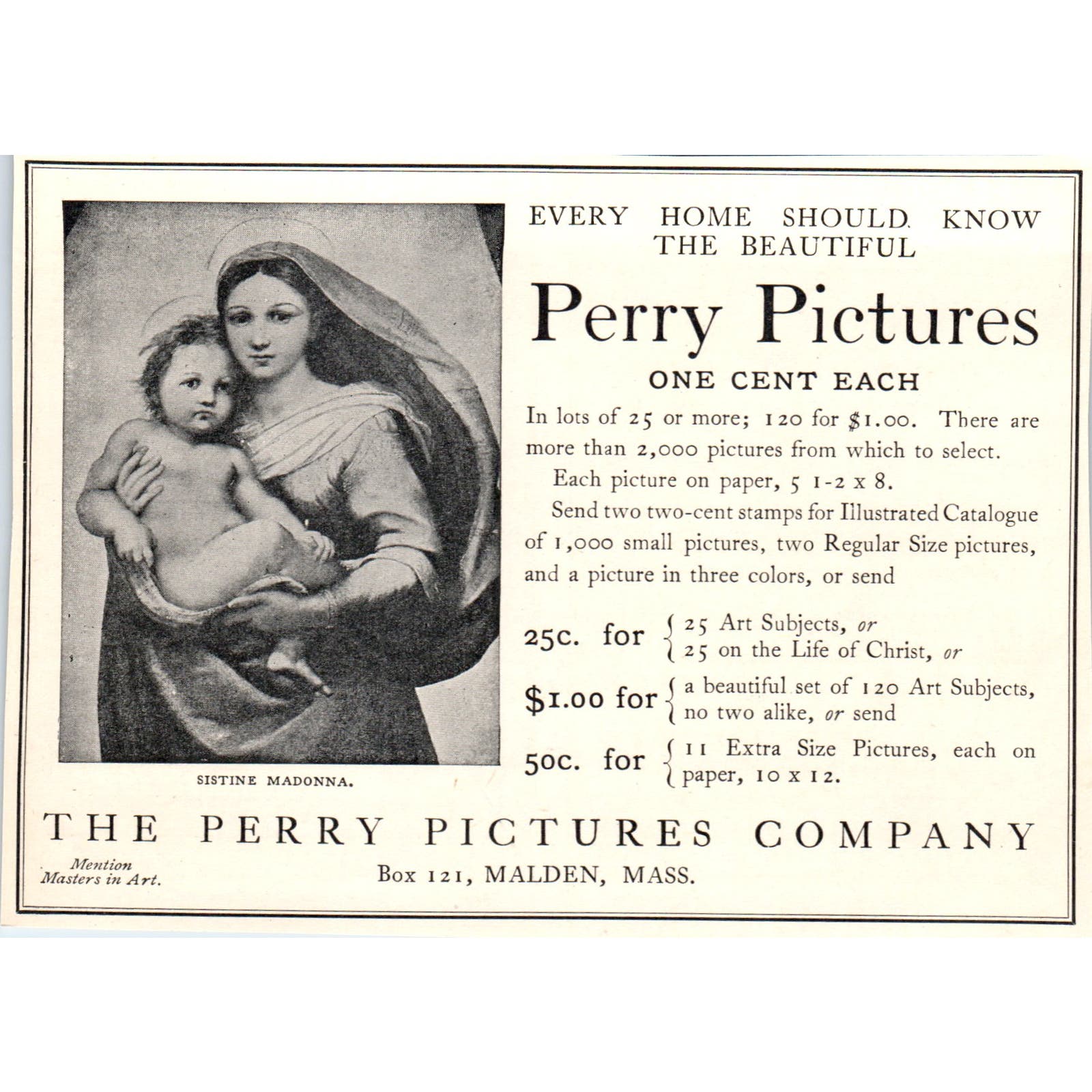 Perry Pictures Sistine Madonna Malden MA c1905 Victorian Ad AE9-MA2