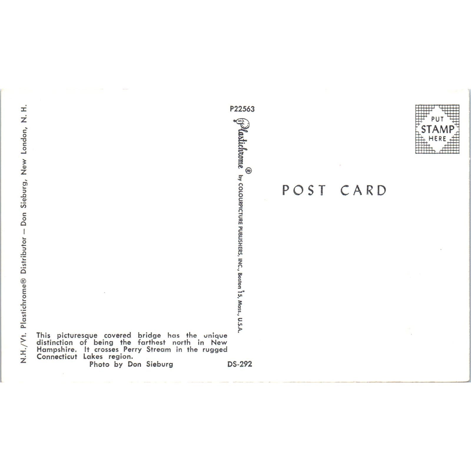 Perry Stream Connecticut Lakes New Hampshire Covered Bridge Postcard PB12