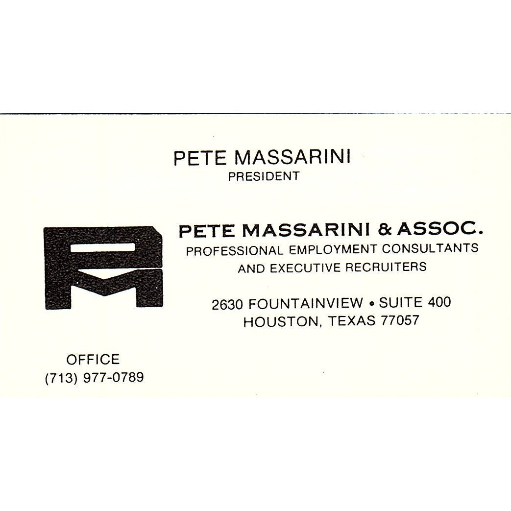 Pete Massarini & Associate Pete Massarini Houston Texas Vintage Business Card SF3-B7