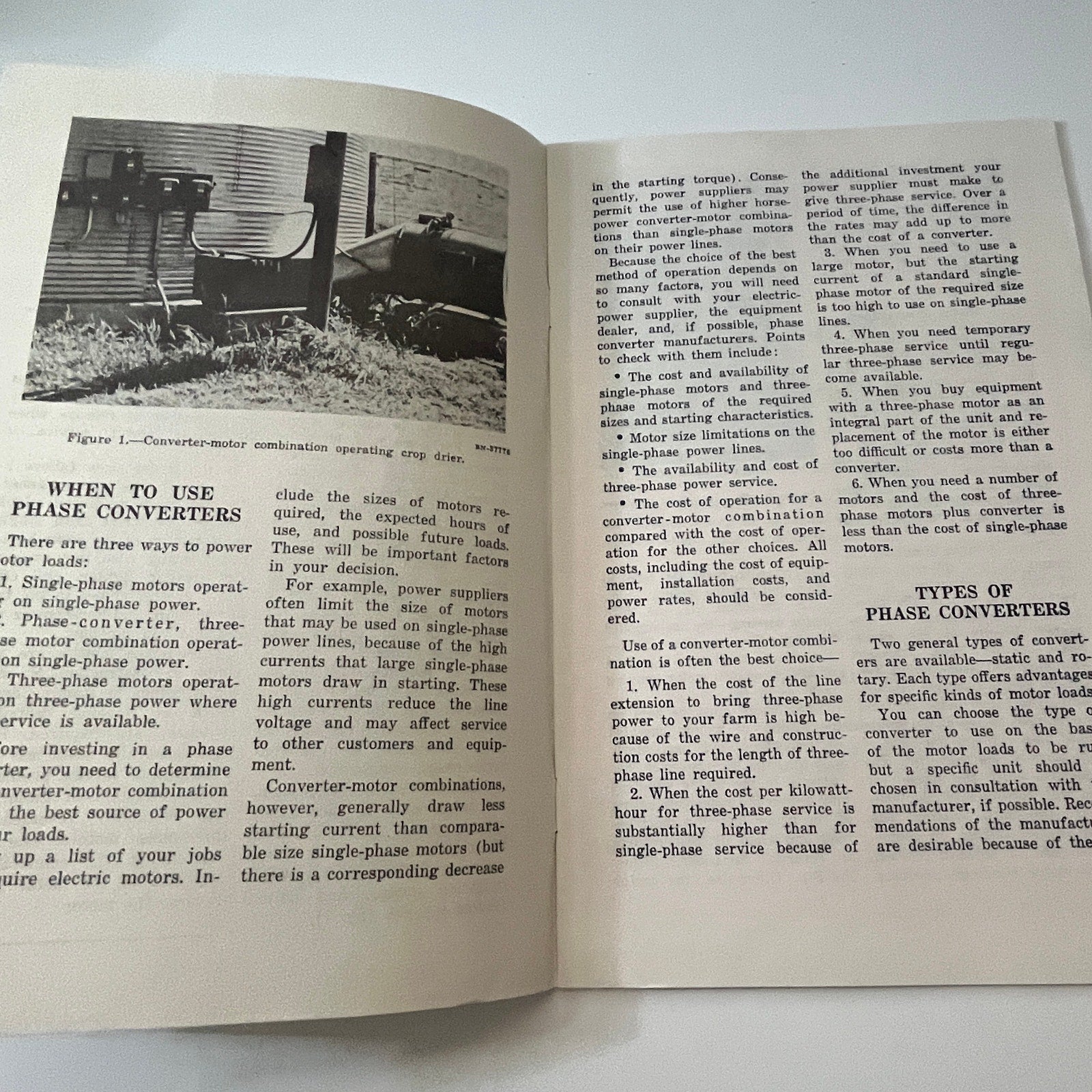 Phase Converters for Operation of 3-Phase Motors From Single-Phase Power 1972 USDA Farmers Bulletin Booklet TK2-XB3