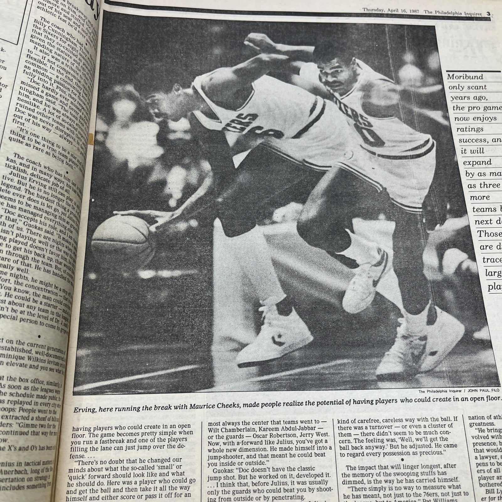 Philadelphia Inquirer April 16 1987 Julius Erving Retirement Tribute Issue TK3