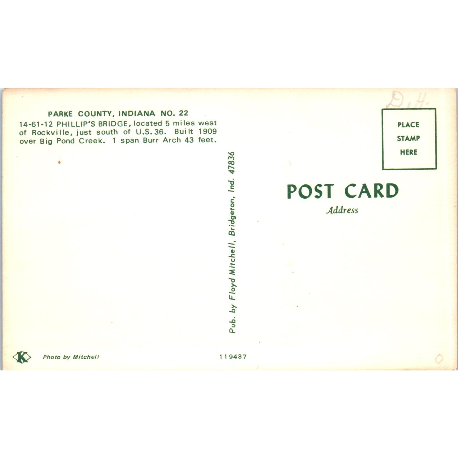 Phillips Bridge 14-61-1 Parke County IN 22 Vintage Covered Bridge Postcard PC14