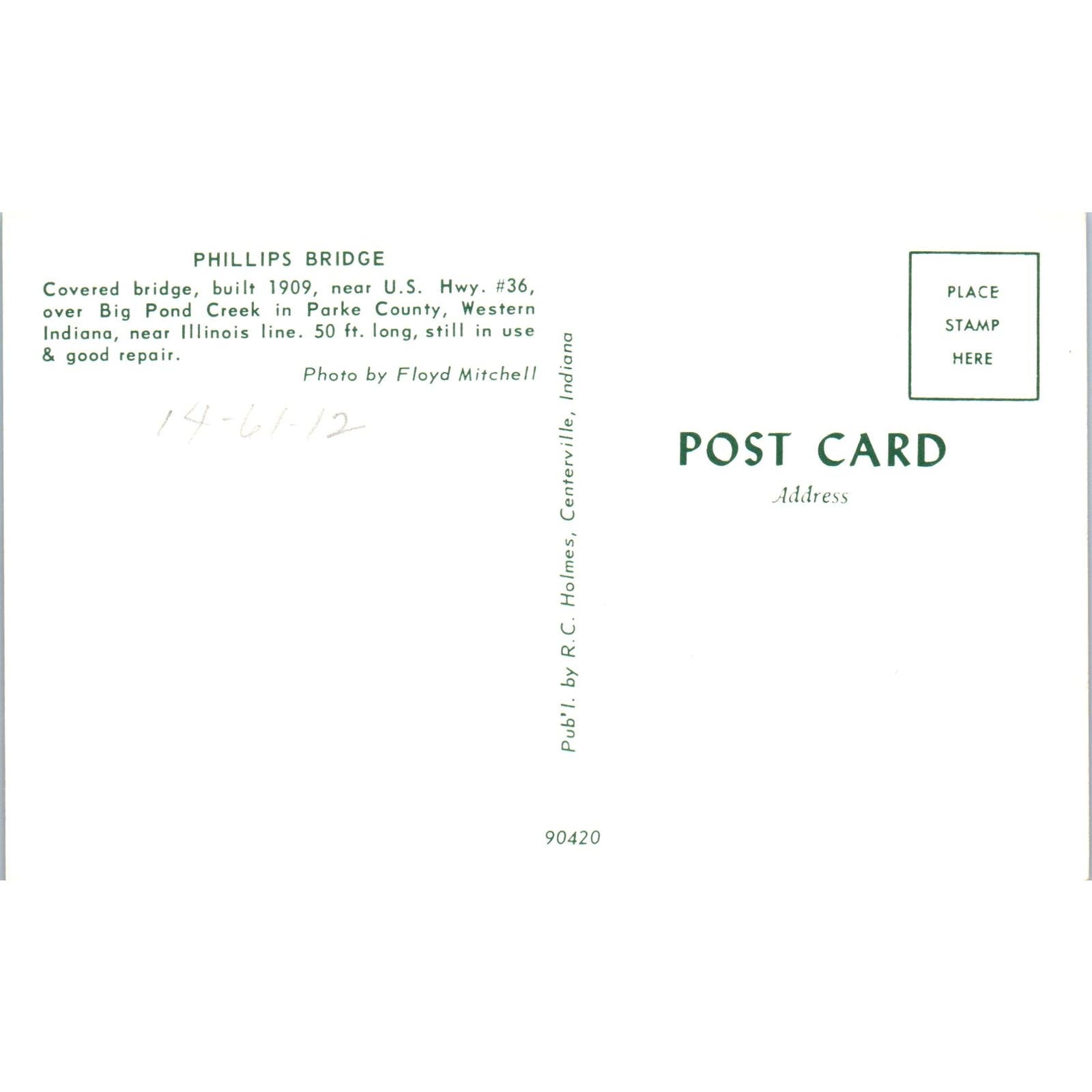 Phillips Bridge Parke County Big Pond Creek IN Covered Bridge Postcard PC6