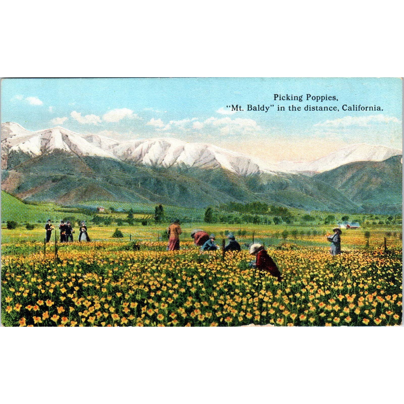 Picking Poppies Near Mt. Baldy California c1910 Original Postcard TK1-P20