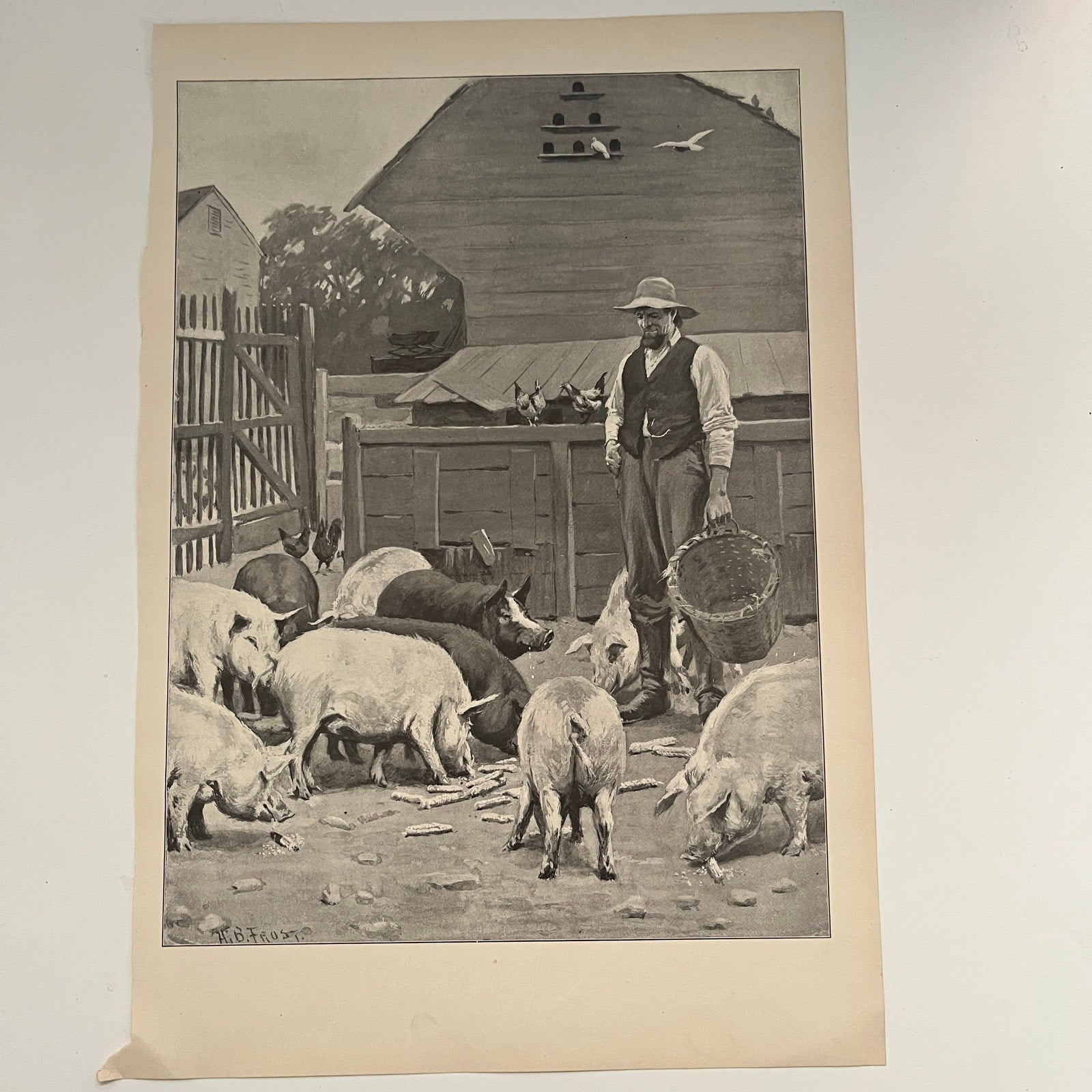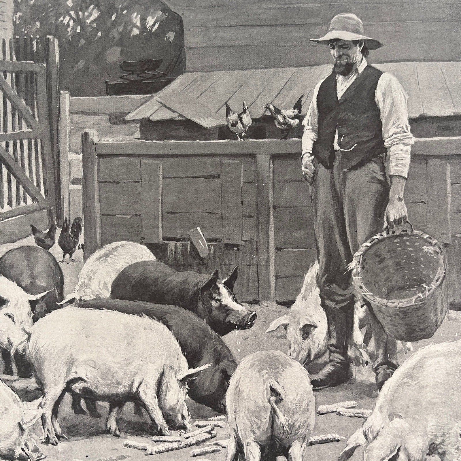 Pigs - Farming Scene - Original 1904 A.B. Frost Art Print V26-4