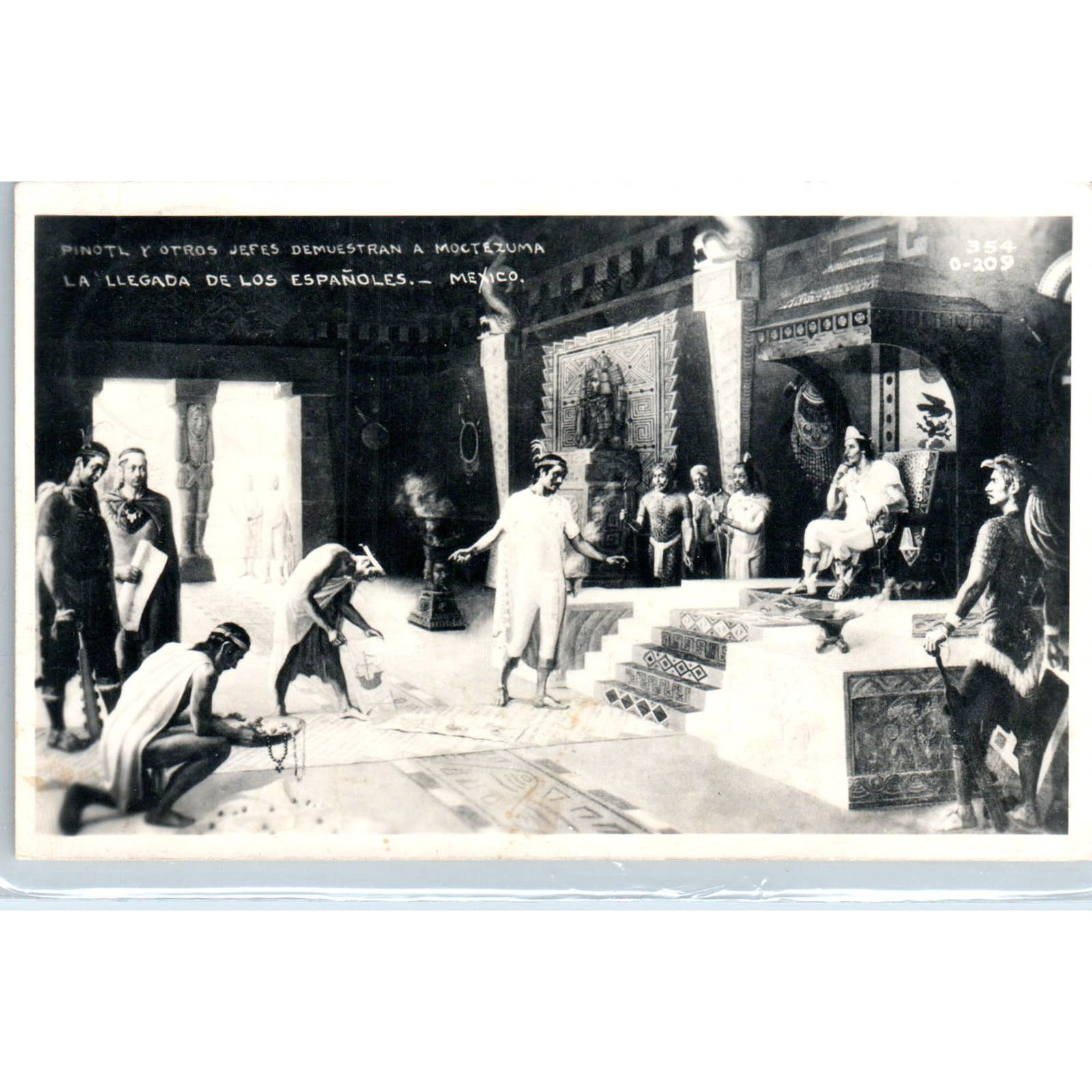 Pinotl Y Otros Jefes A Moctezuma La Llegada De Los Espanoles Mexico - Original RPPC Postcard TJ7-MP