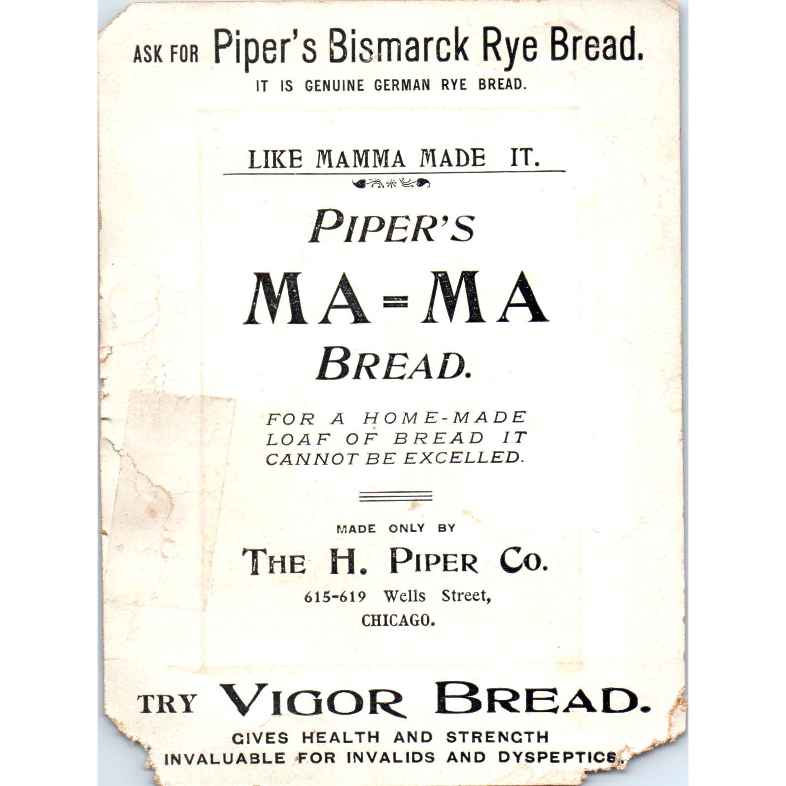 Piper's Bismark Rye Bread H. Piper Chicago c1880 Victorian Trade Card AE2
