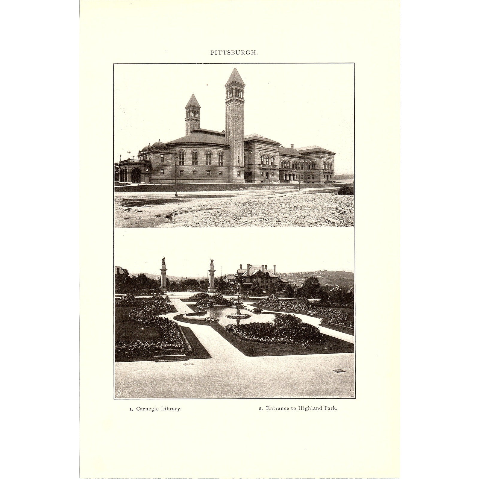 Pittsburgh - Carnegie Library, Entrance to Highland Park Art Print 6.5x10 V6