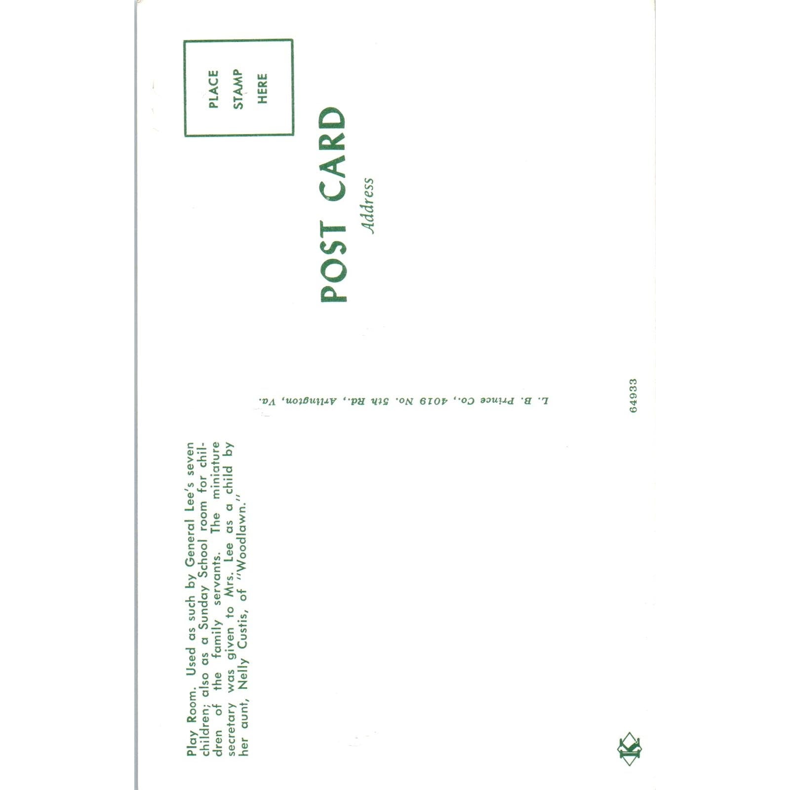 Play Room and Dolls Used By General Lee's Seven Children Original Postcard PB8