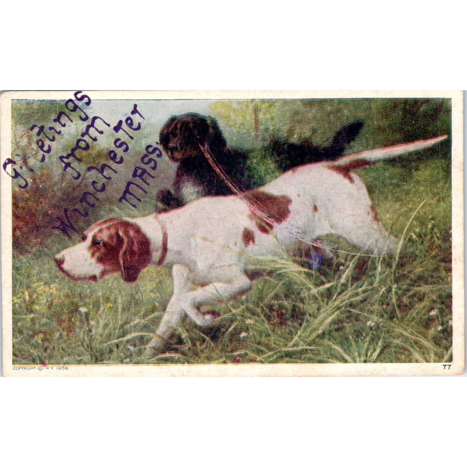 Pointer Bird Dog Greetings from Winchester MA c1910 Postcard PD2