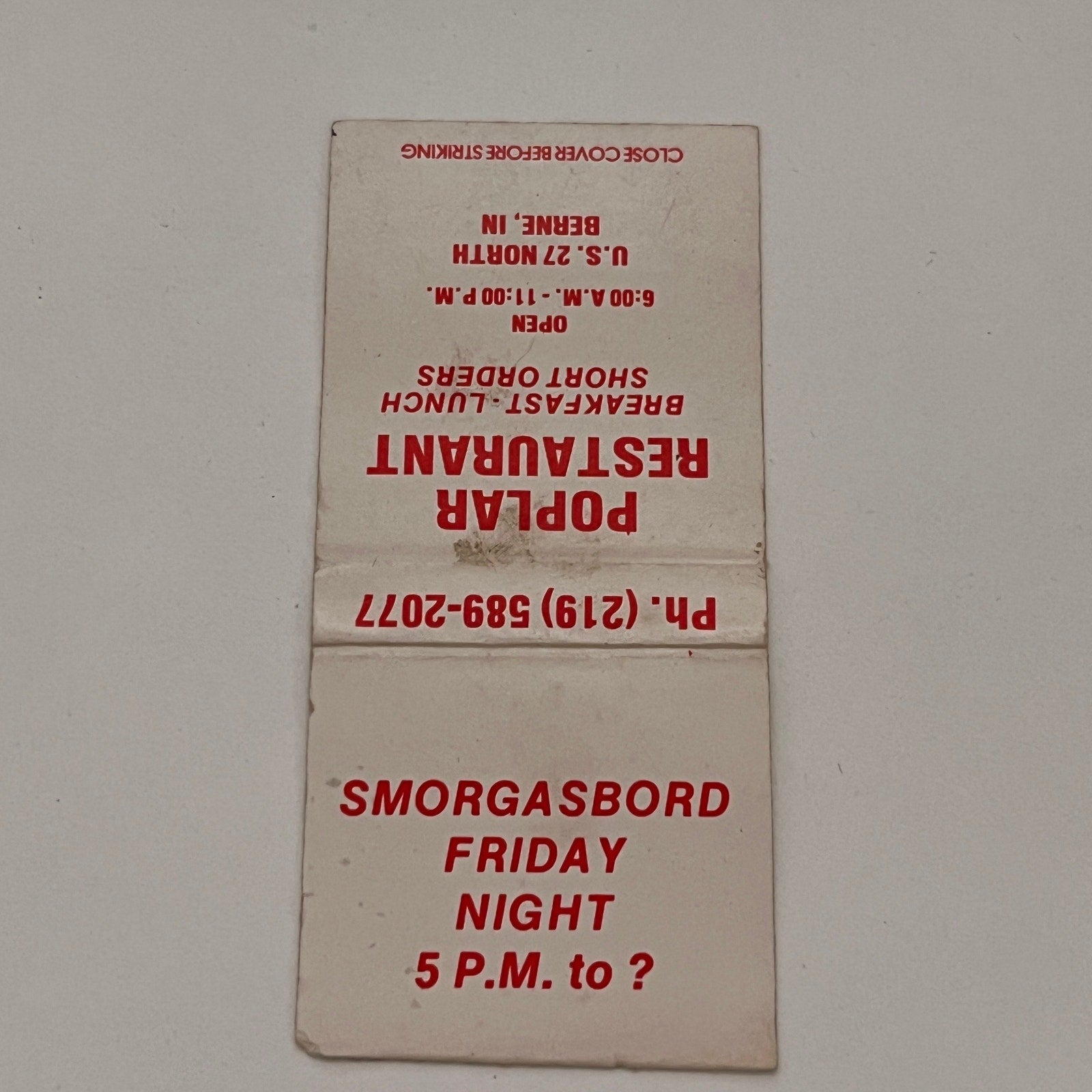 Poplar Restaurant Smorgasbord Berne IN Vintage Matchbook TB6-MB2-14