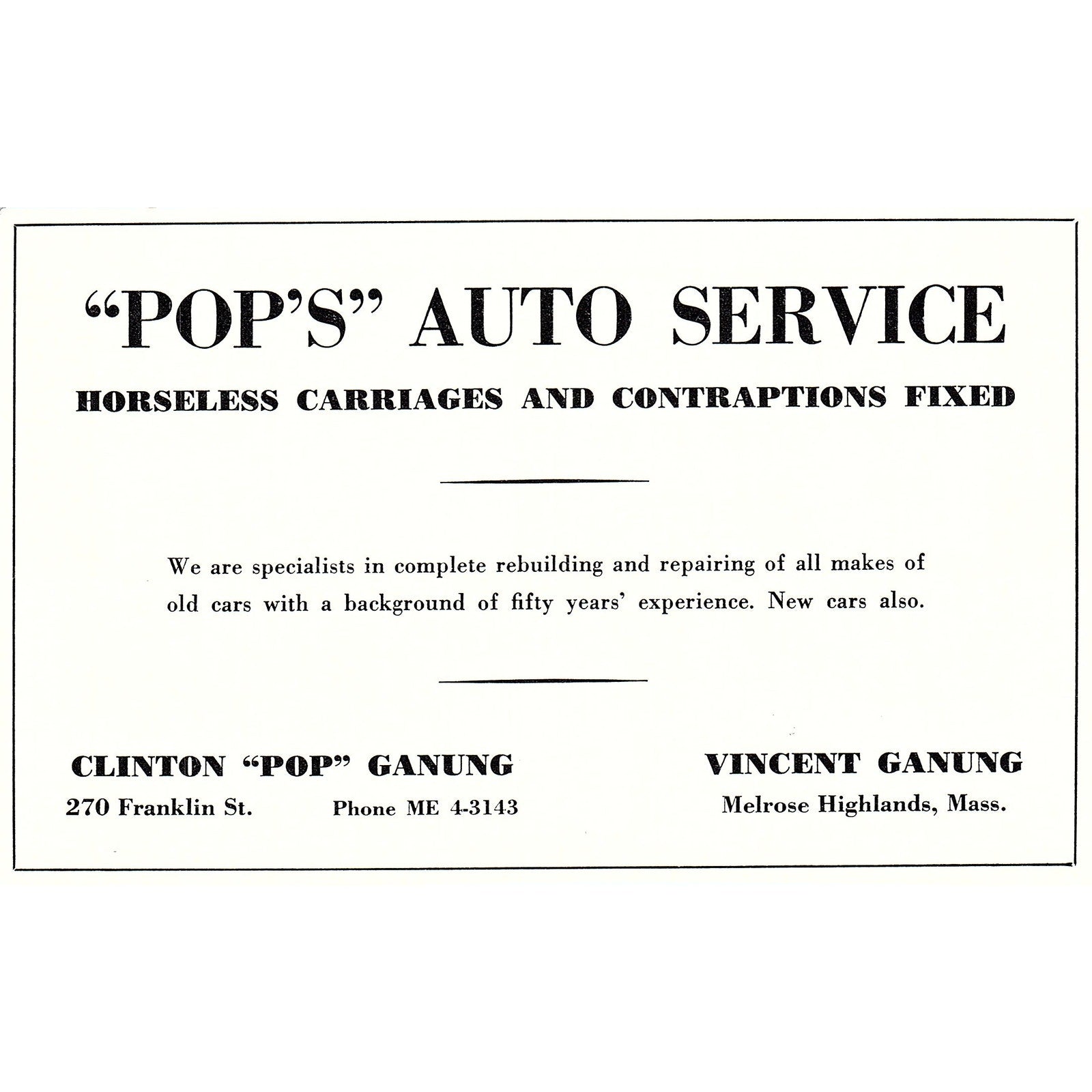 Pop's Auto Service Clinton & Vinent Ganung Melrose Highlands MA 1950 Ad AF6-6