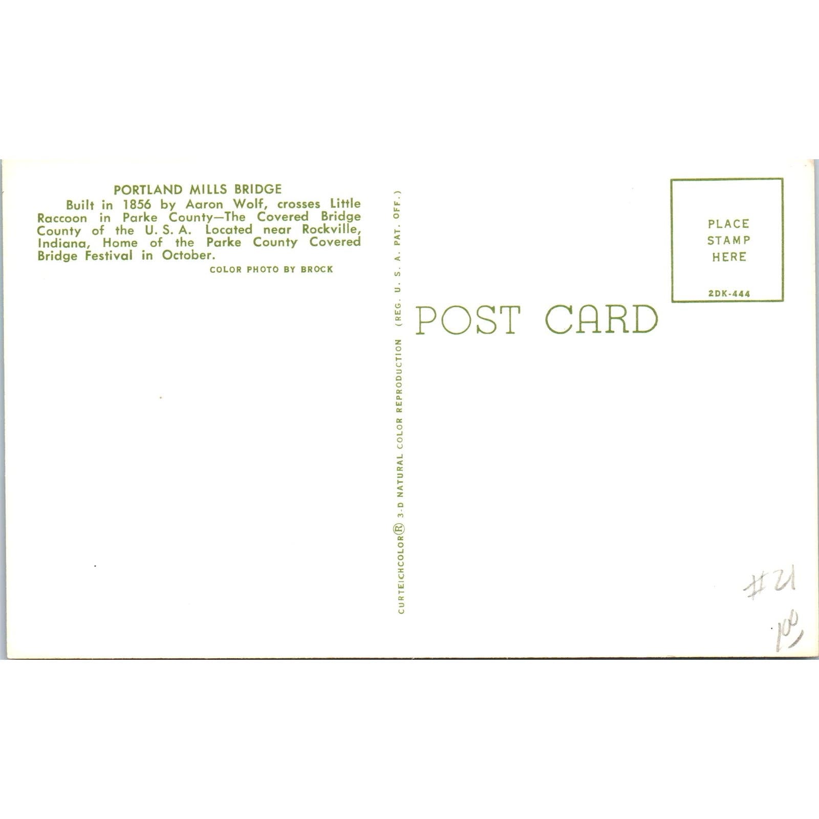 Portland Mills Bridge Parke County IN Vintage Covered Bridge Postcard PC16