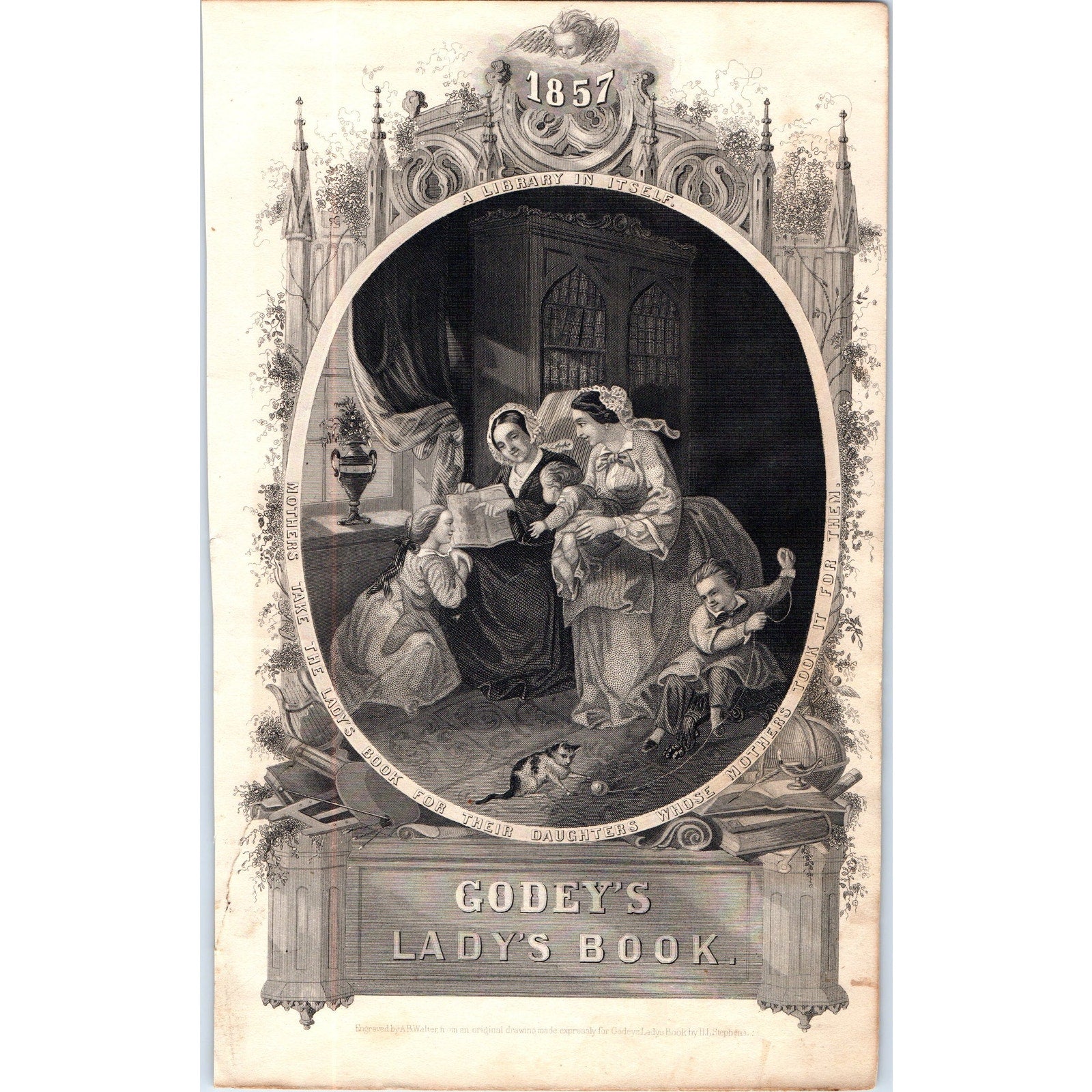Original piece taken from the 1857 Godey's Lady's Book, may have small blemishes, tears, etc. from use. Please review pictures closely. Measures approx 6x9.5".