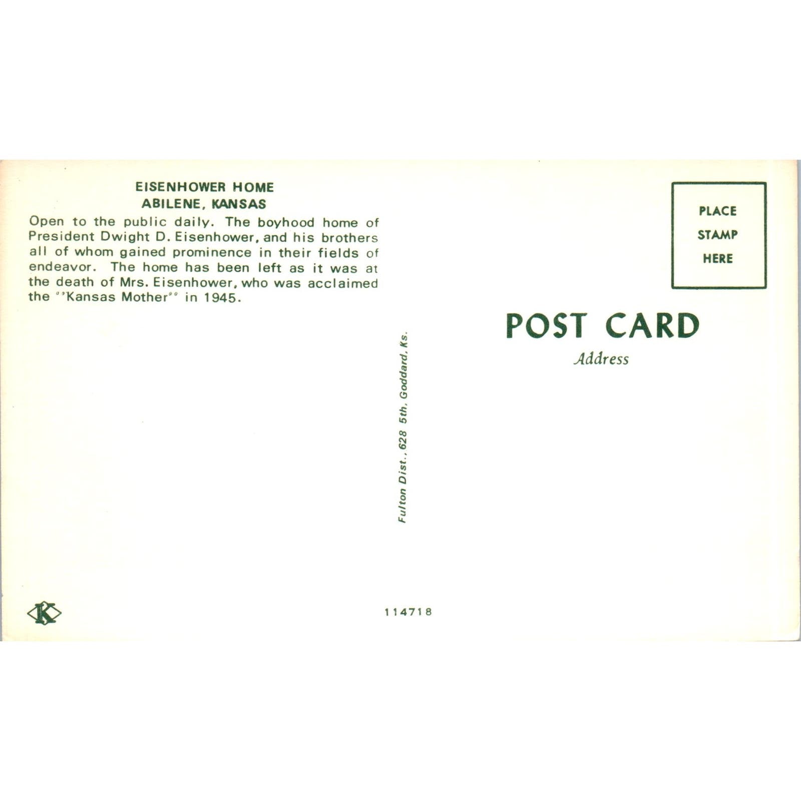President Dwight Eisenhower Home Abilene Kansas Vintage Postcard PC12