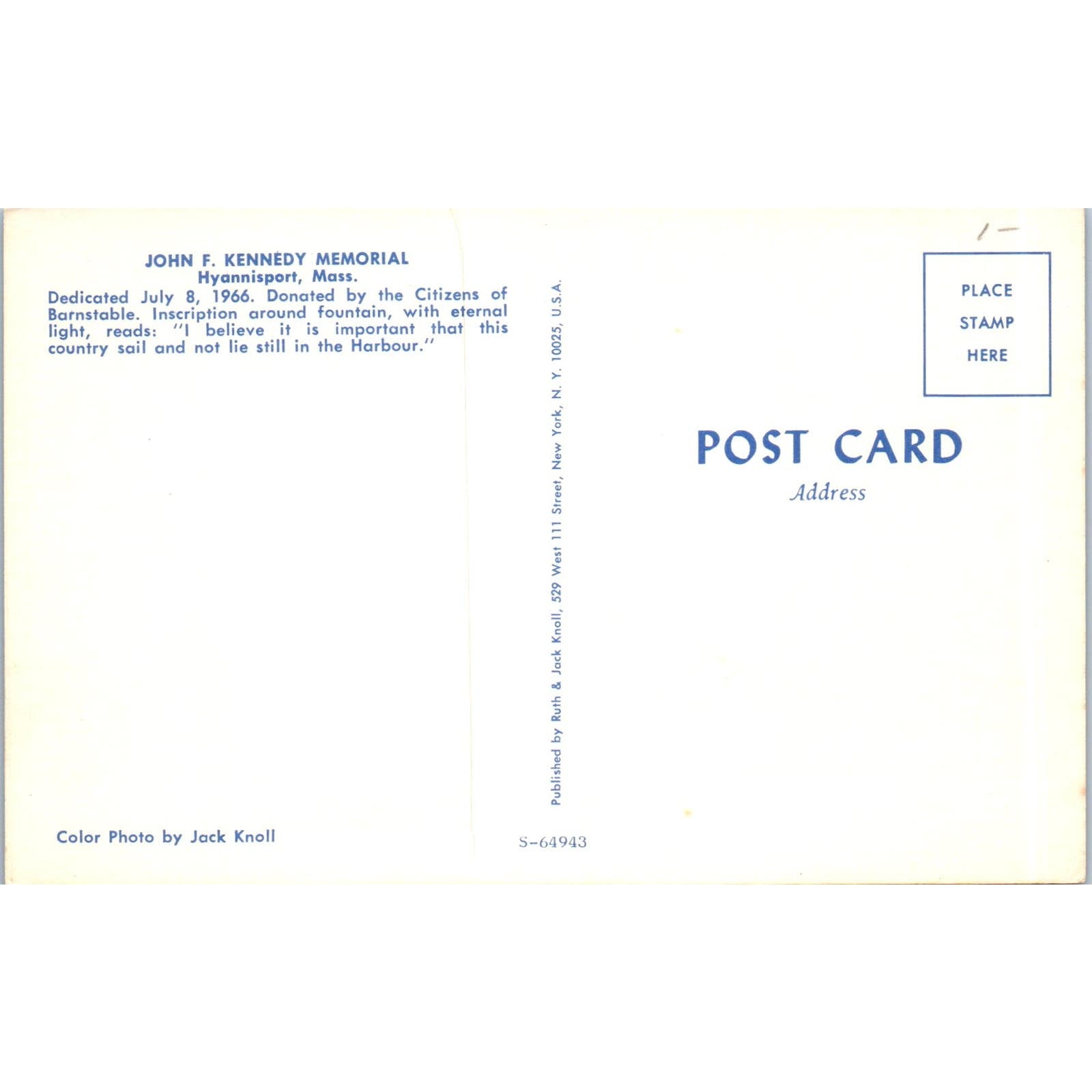 President John F. Kennedy Memorial Hyannisport MA Vintage Postcard PC17
