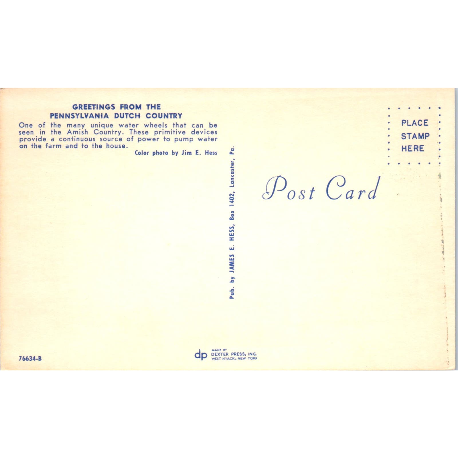 Primitive Amish Water Wheels Pennsylvania Dutch Country Postcard PD8