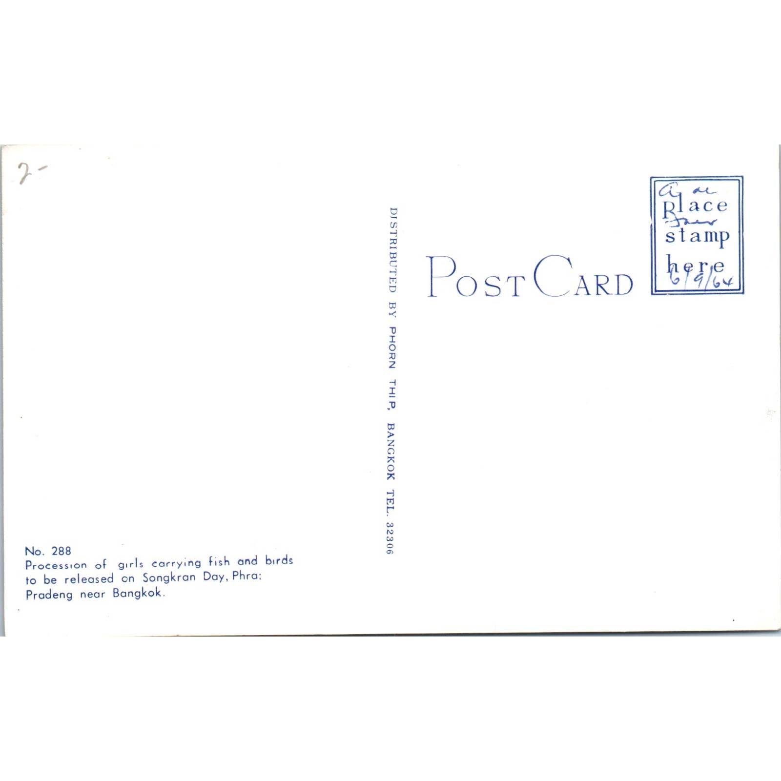 Procession of Girls Songkran Day Phra Pradaeng Bangkok - Original Postcard TJ9-P1