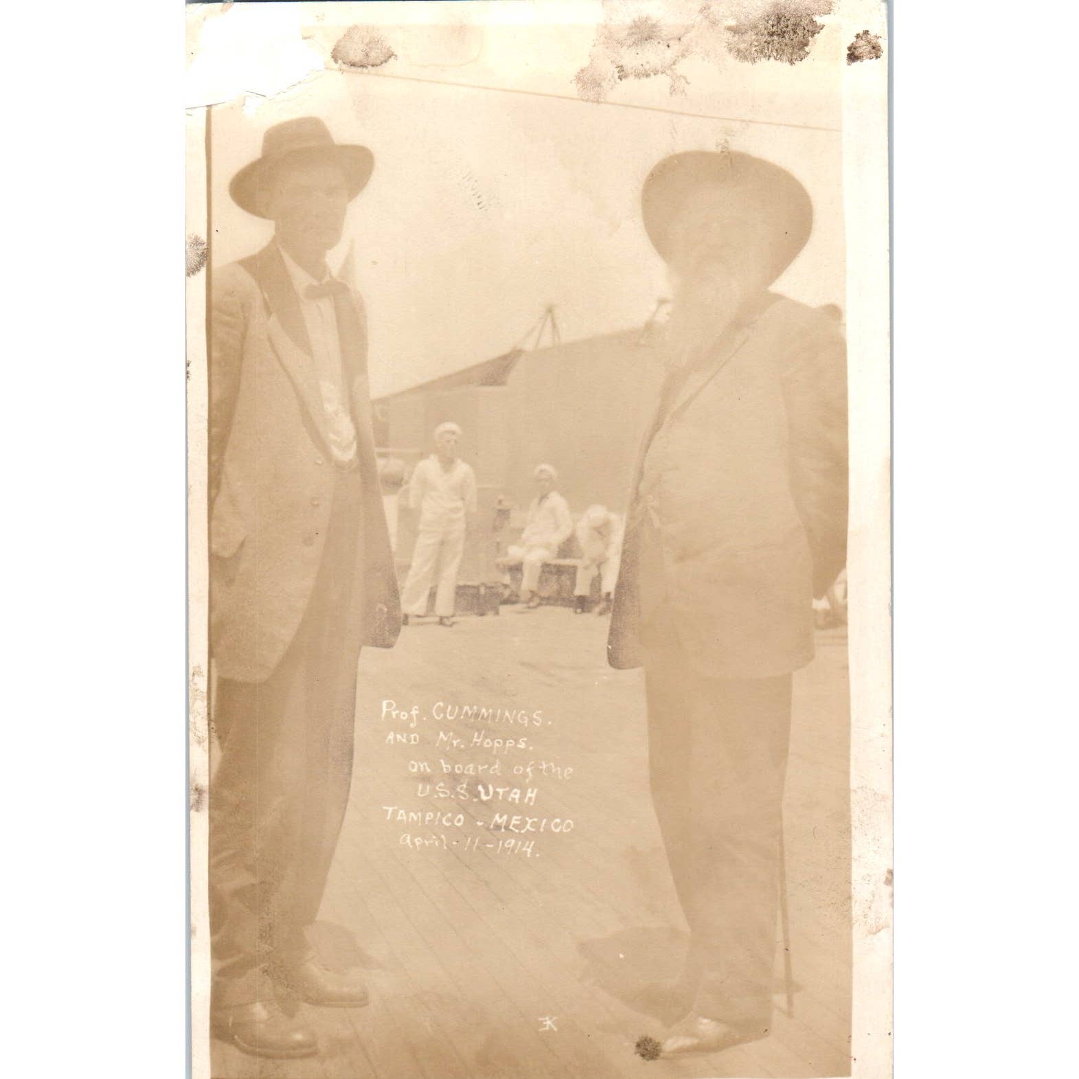 Prof. Cummings & Mr. Hopps Aboard USS Utah Tampico Mexico 1914 - Original Postcard TJ7-RP3