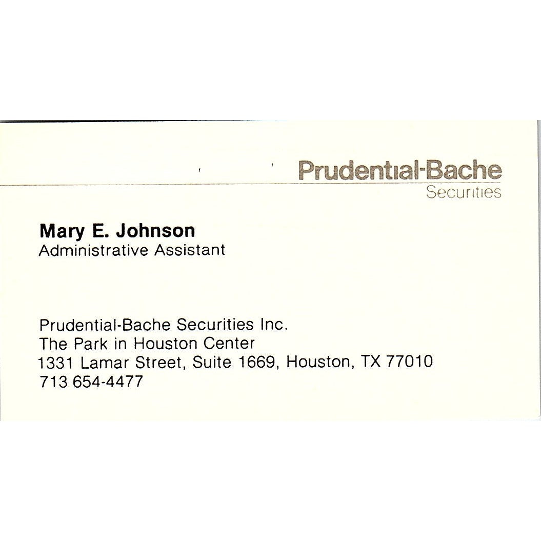 Prudential-Bache Securities Mary E. Johnson Houston TX Business Card SF3-B6