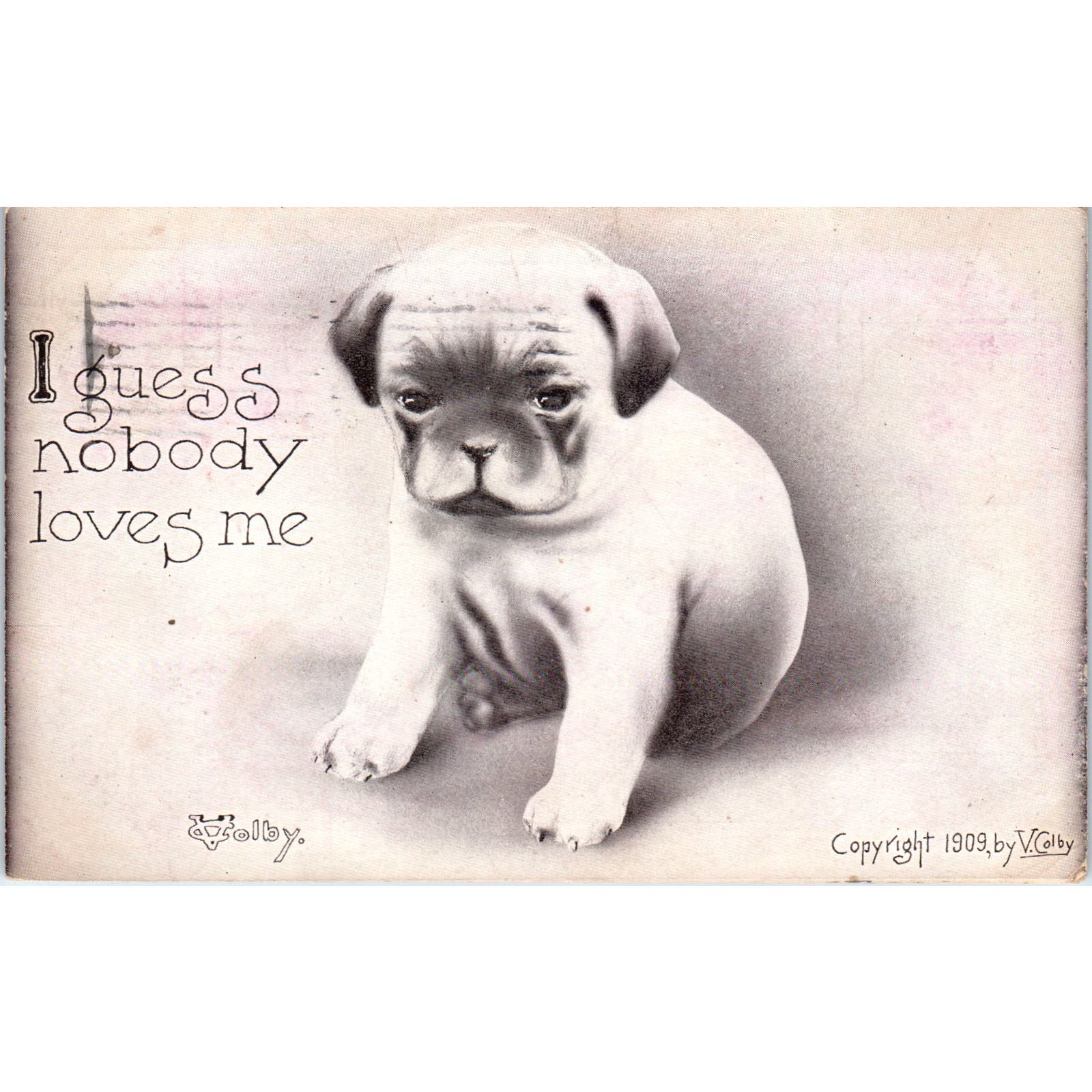 Pug Puppy Dog I Guess Nobody Loves Me Vincent Colby Illustration 1909 Postcard PD2