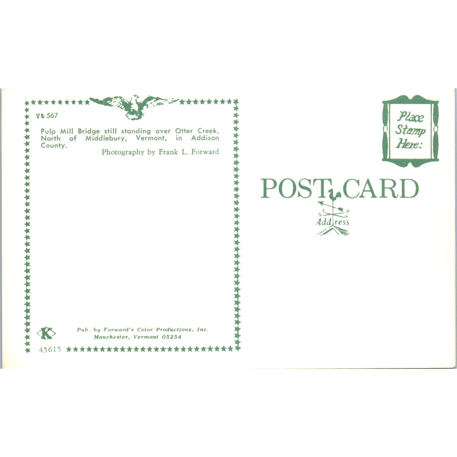 Pulp Mill Bridge Otter Creek Middlebury Vermont Covered Bridge Postcard PB13