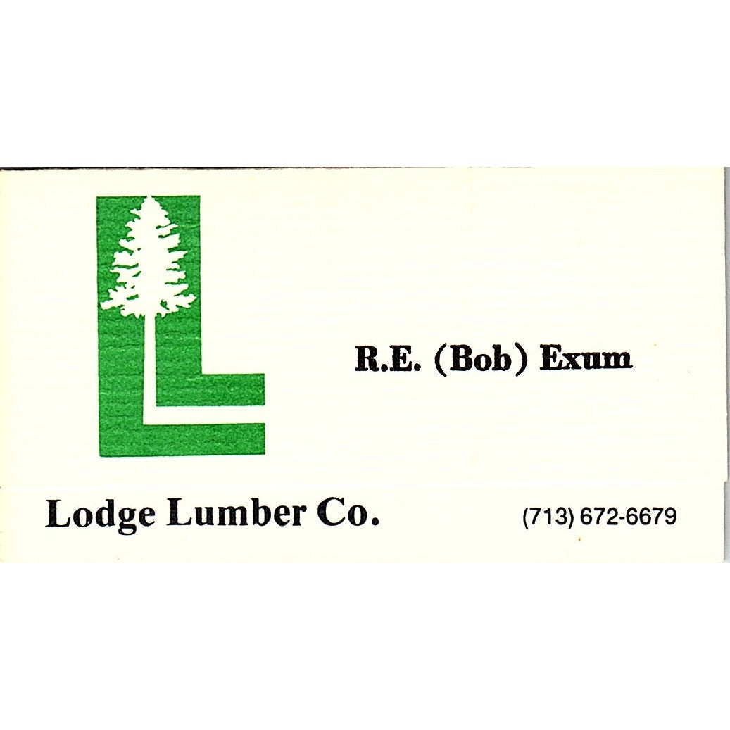 R.E. Bob Exum Lodge Lumber Co Houston TX Vintage Business Card SD9-B13