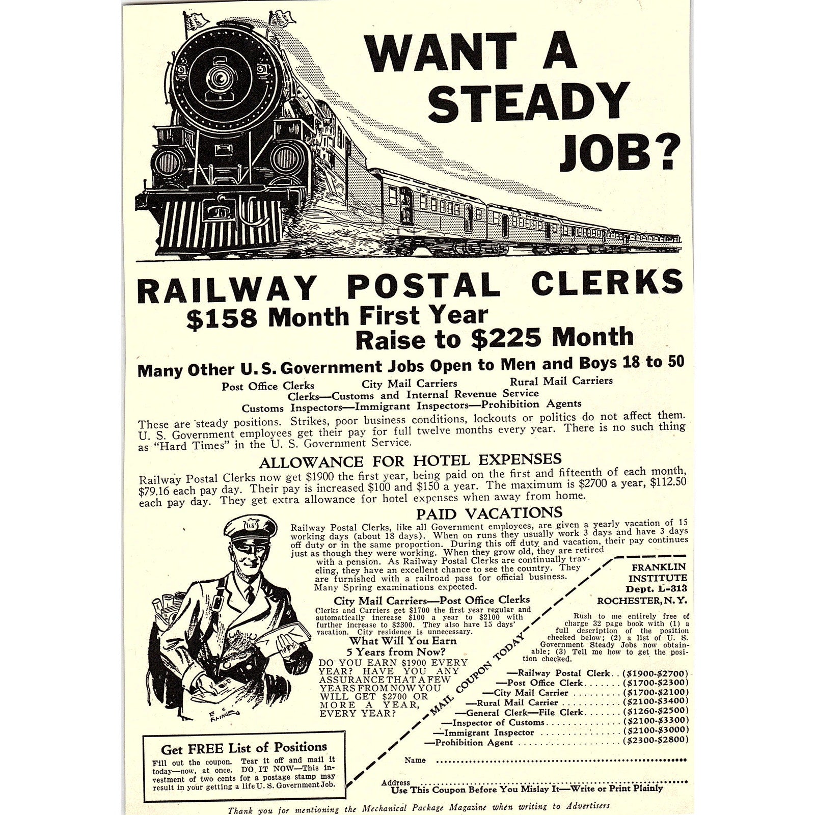 Railway Postal Clerk Training Franklin Institute Rochester NY 1931 Ad AG1-14