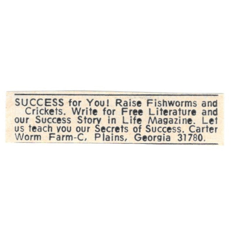 Raise Fishworms - Carter Worm Farm Plains Georgia 1977 Ad AF6-S7