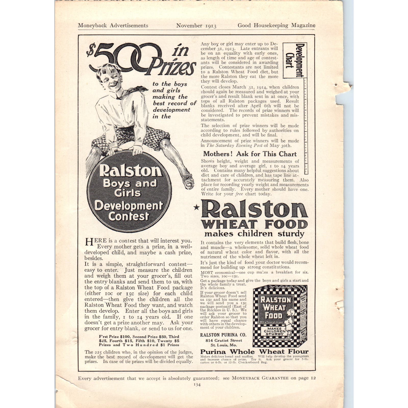 Ralston Wheat Food Makes Children Sturdy - 1913 Good Housekeeping Magazine Ad 6x9 D10